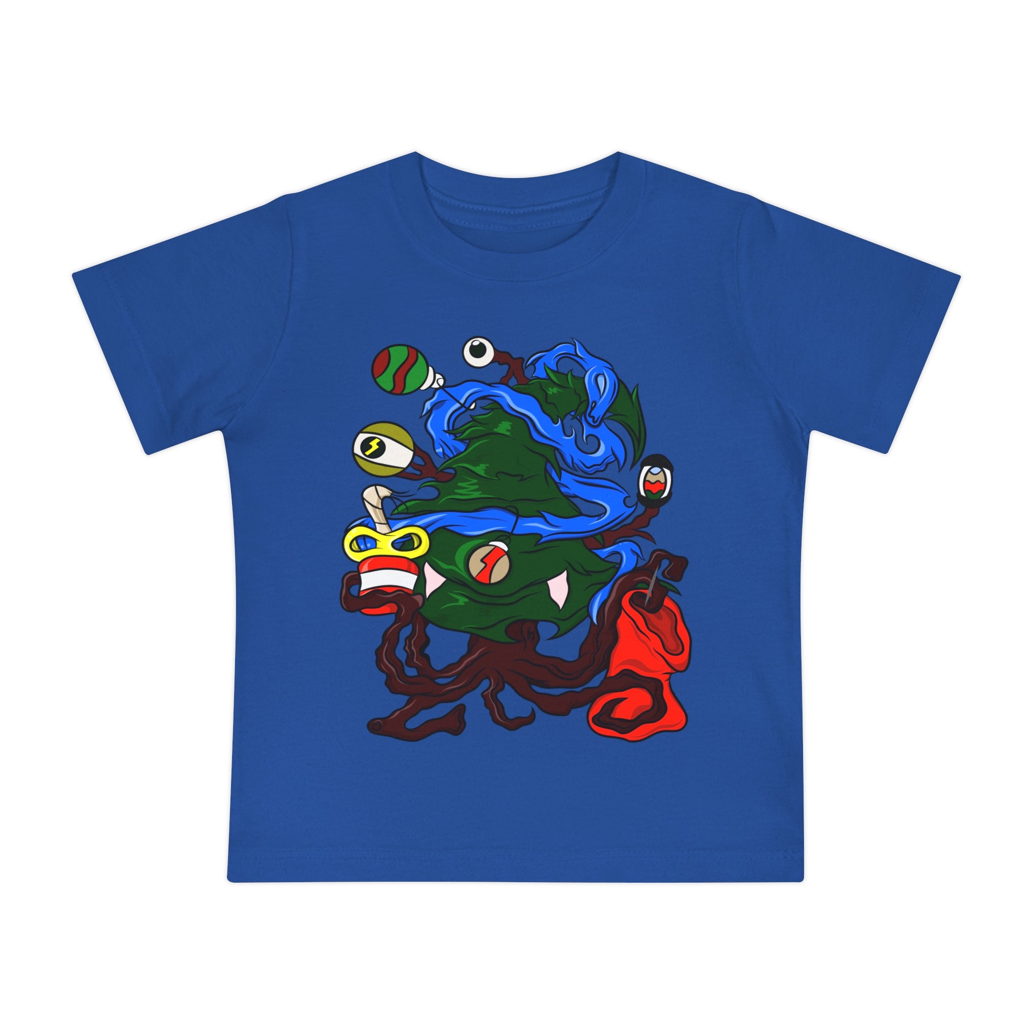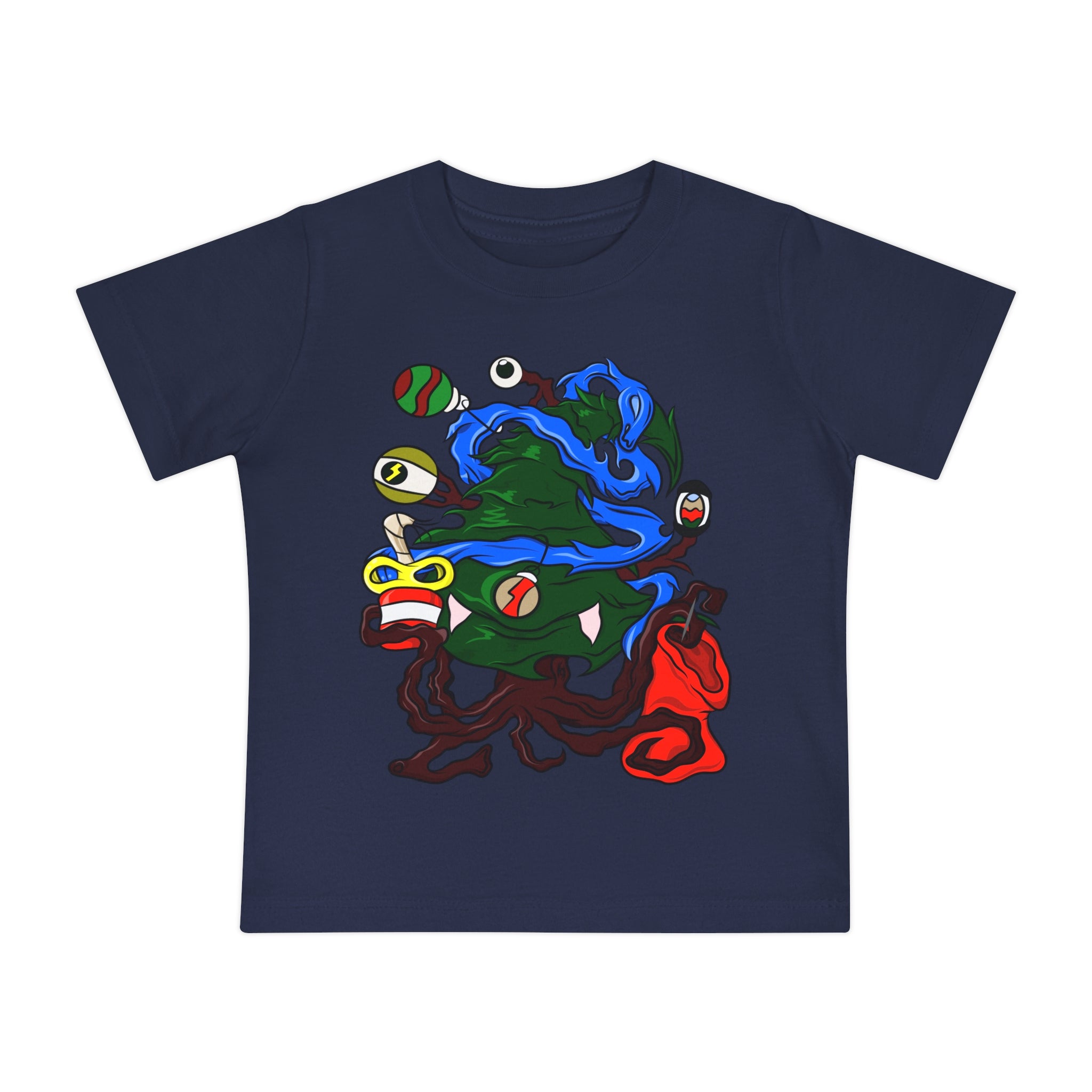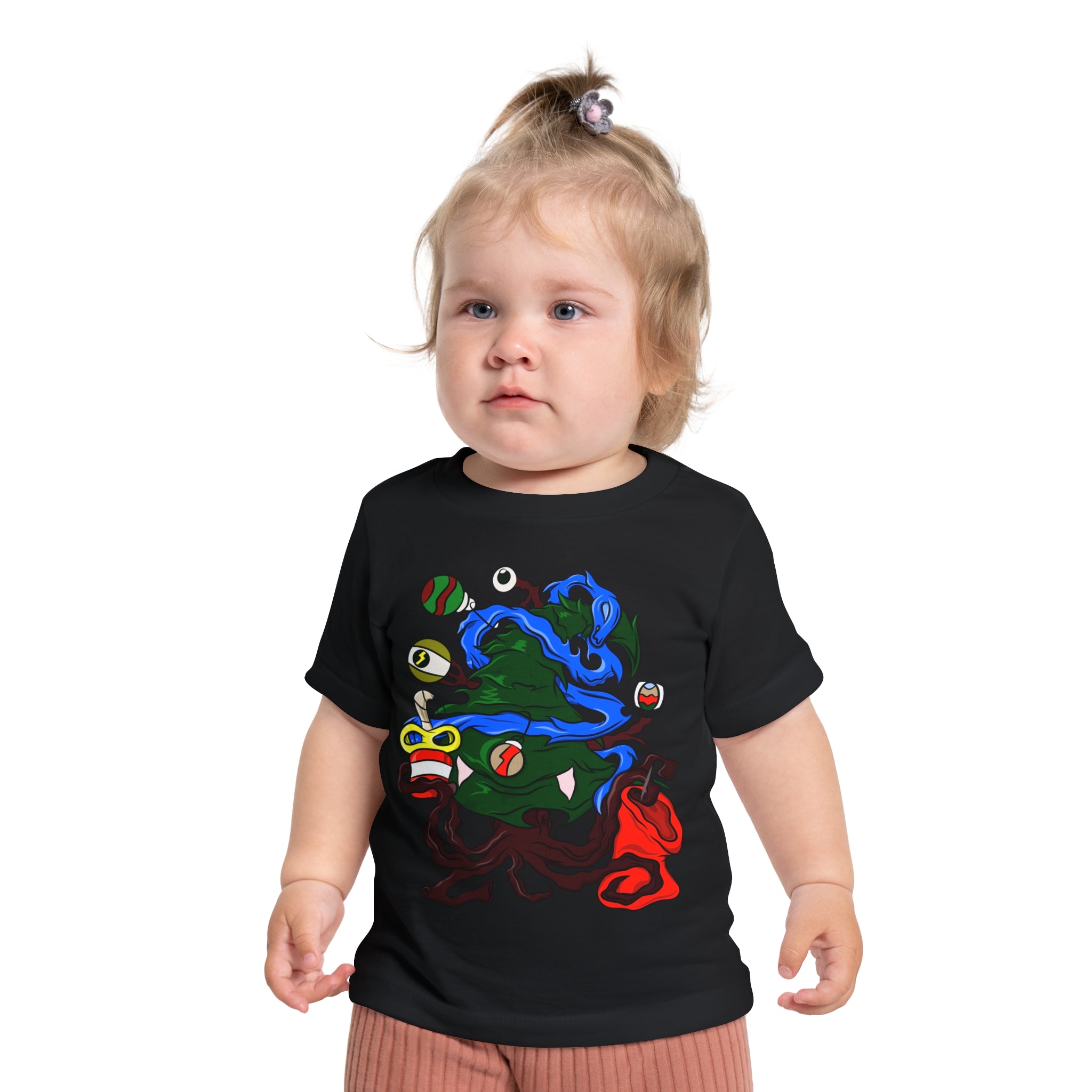 This baby short sleeve tee brings a mischievous, darkly playful twist to holiday wardrobe rotation. The print imagines a roguish...