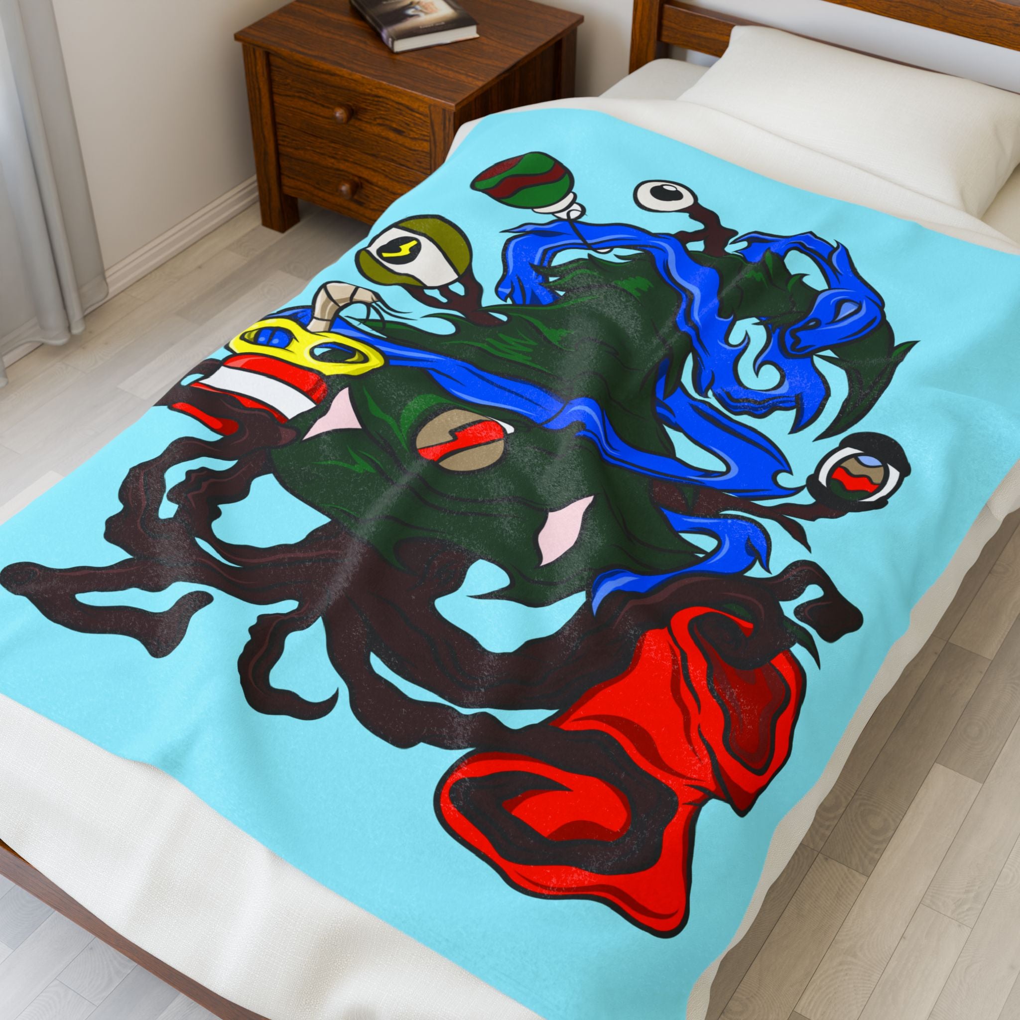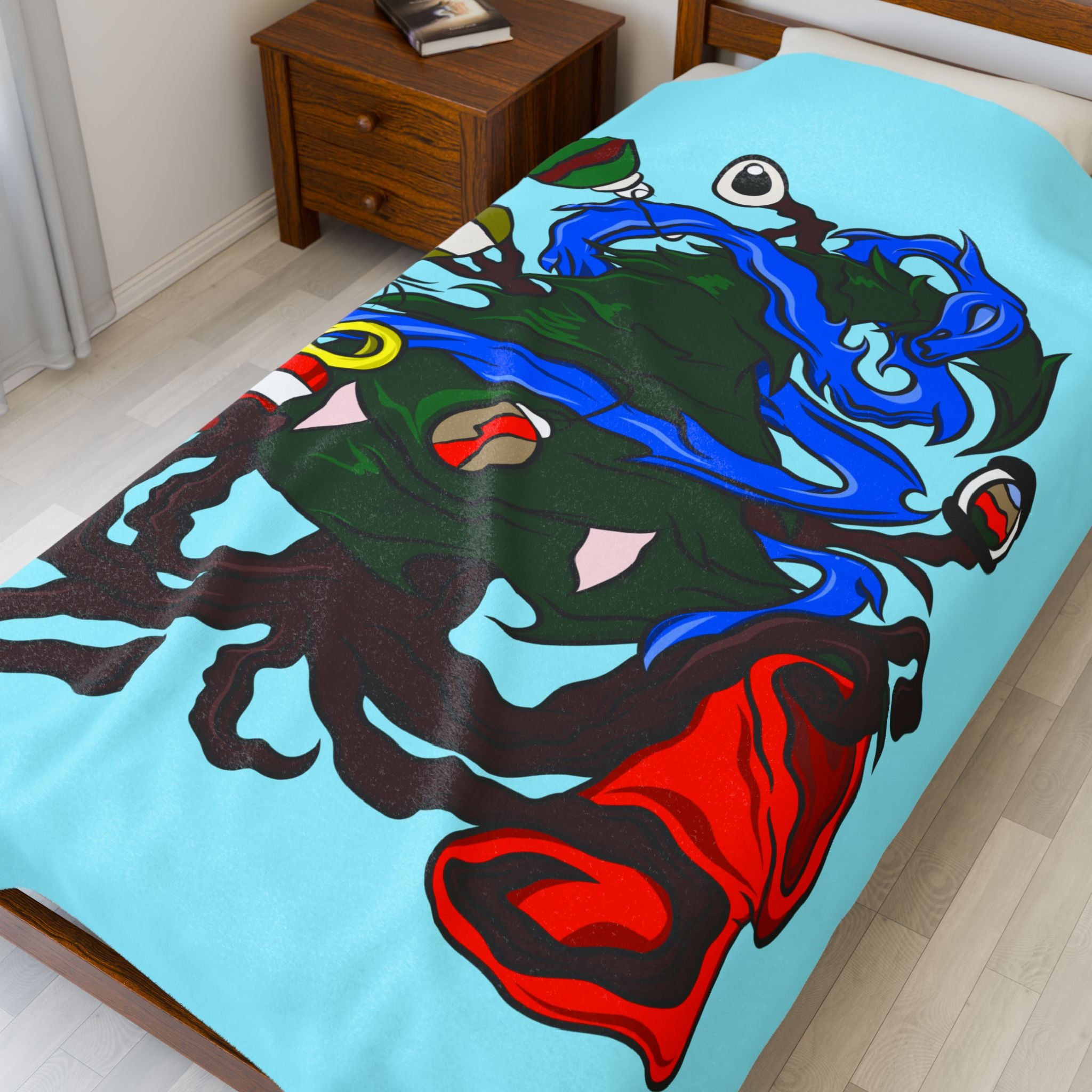 Wrap yourself in a velvety hug that feels like a quiet, imaginative escape. This plush blanket brings bold, hand-drawn artwork...