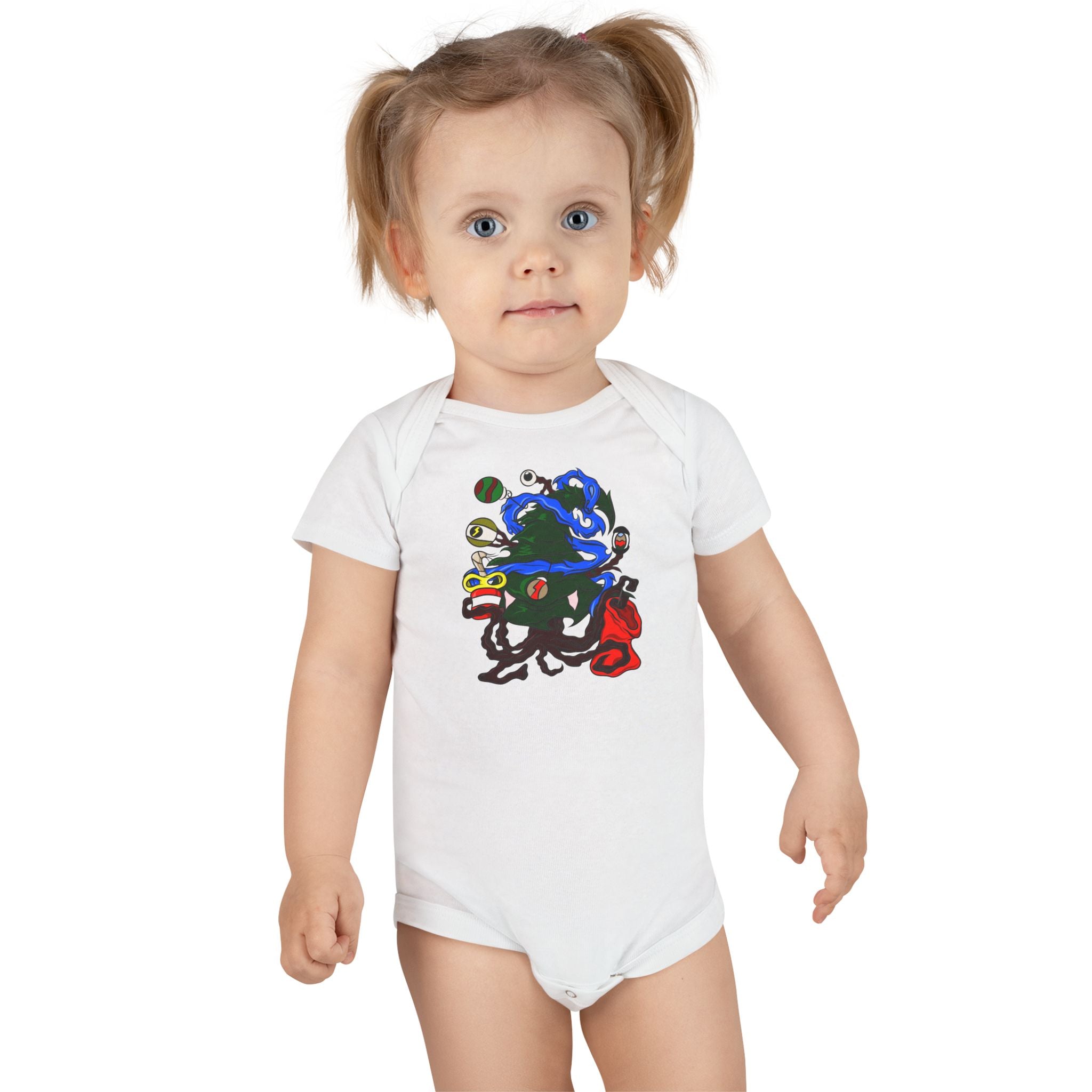 This baby baby short sleeve Onesie brings a mischievous, darkly playful twist to holiday wardrobe rotation. The print imagines a...