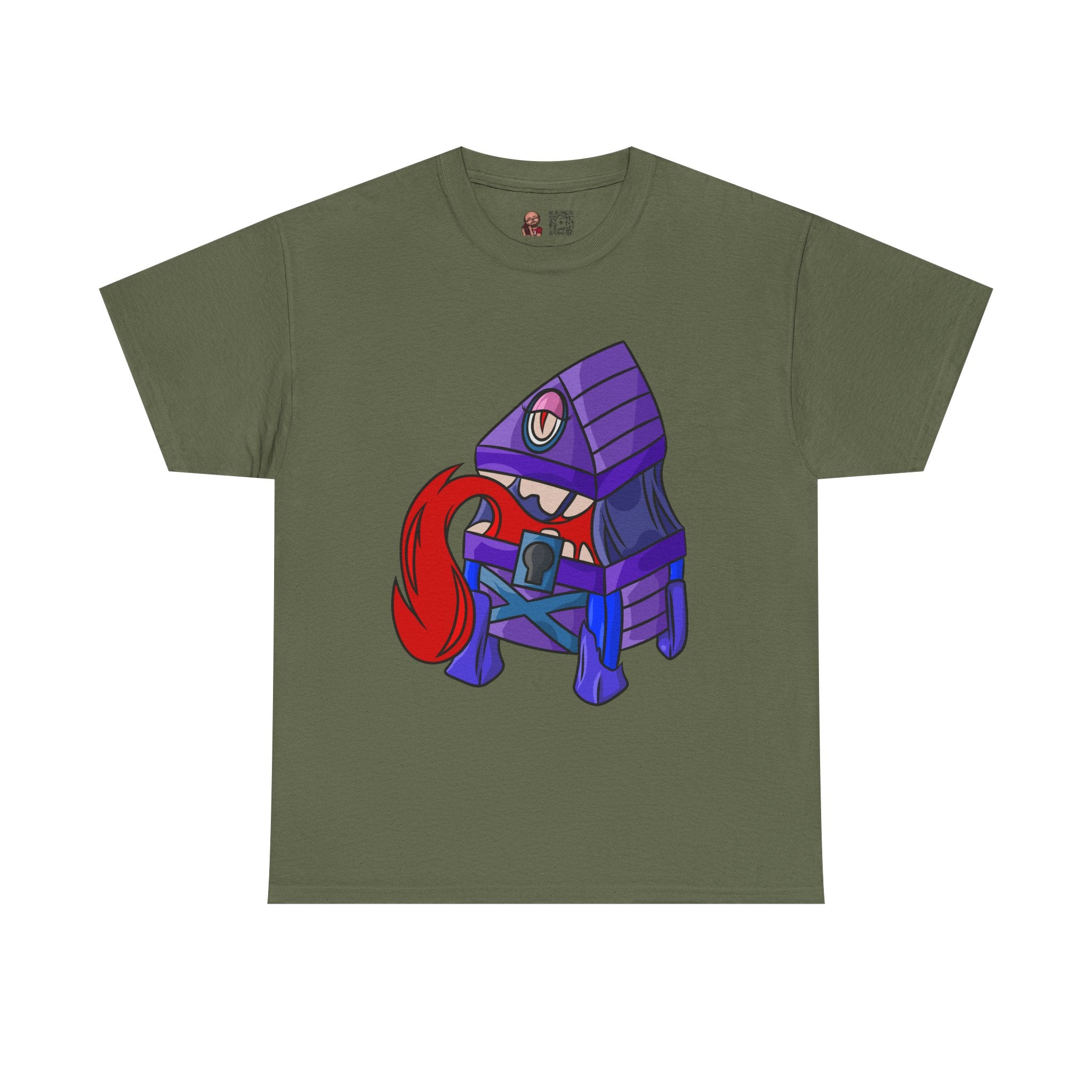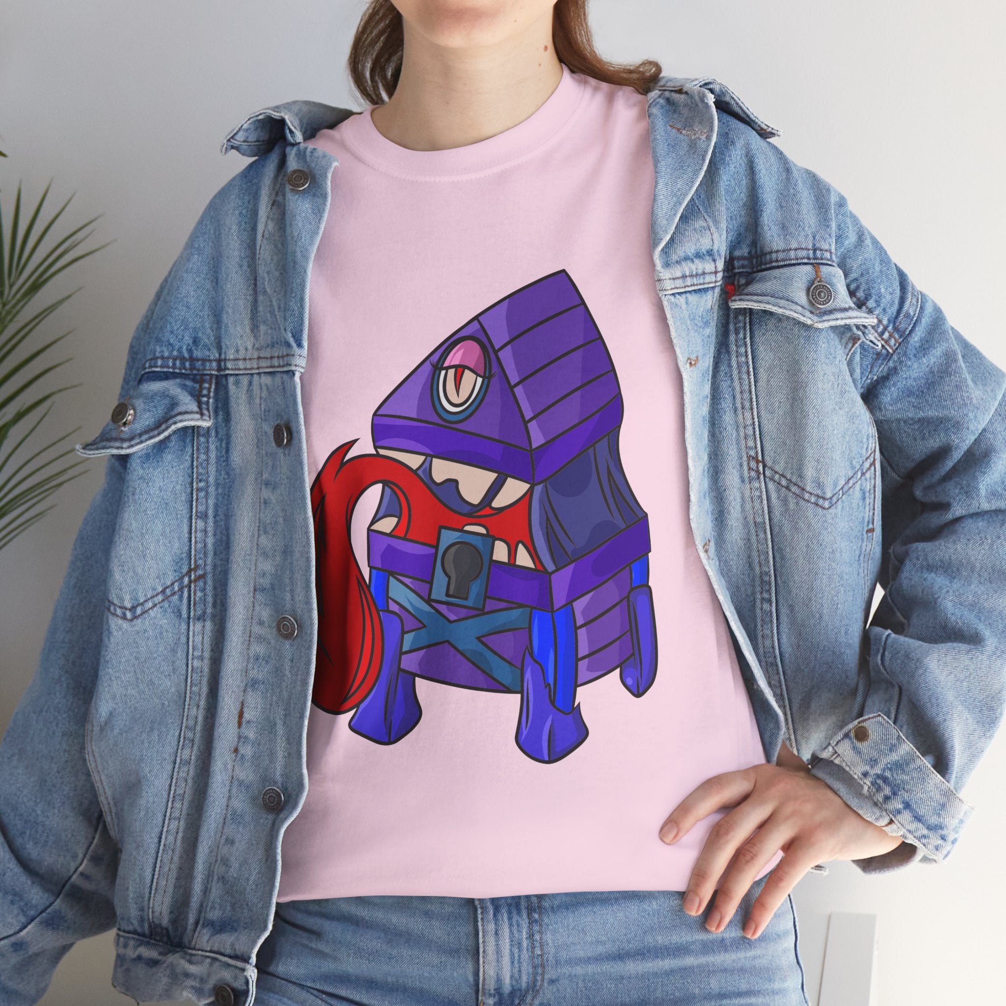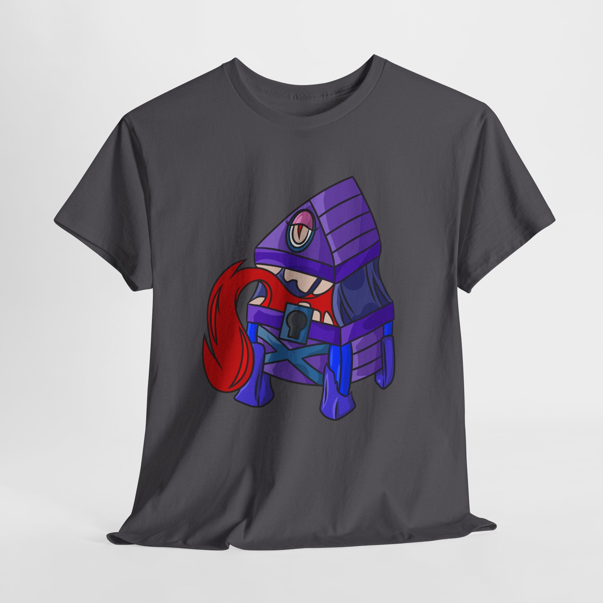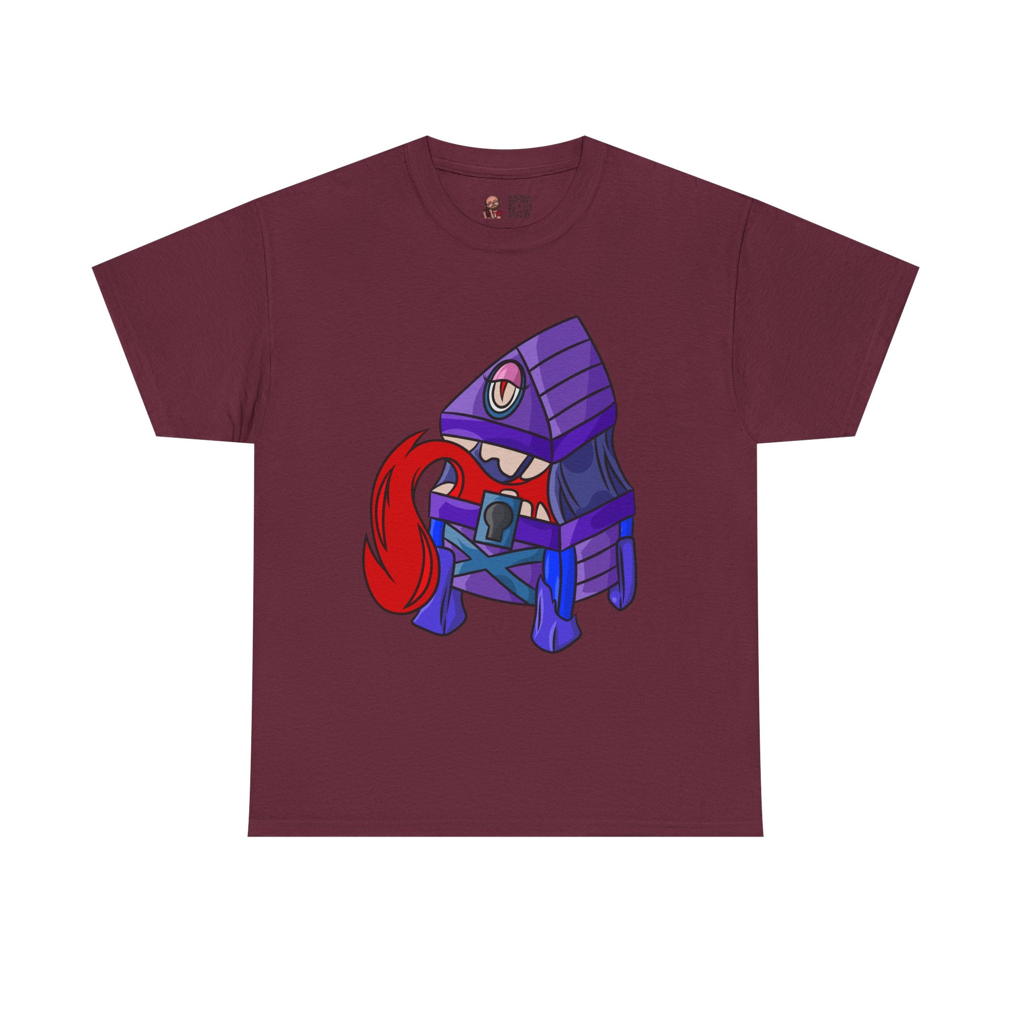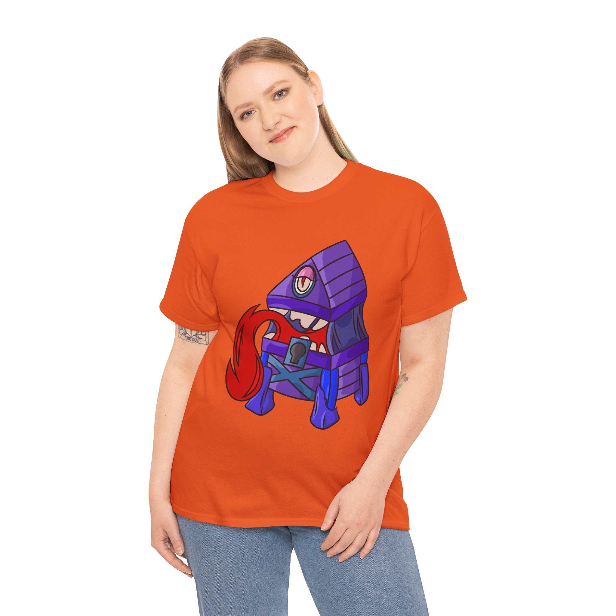 Minnie the Mimic is a playful, slightly spooky tee that brings dungeon humor to everyday wear. Imagine a small, loveable mimic — all toothy grin and curious tongue — waiting in the shadows of a tabletop session or tucked into the corner of a game night. This shirt’s artwork leans into affectionate menace: mischievous eyes, a licking tongue, and a pose that reads more cheeky companion than monster. It slips easily into the wardrobe of roleplayers, dungeon masters, and fantasy fans who enjoy a wink of dark whimsy. Soft, sturdy cotton and a smooth print give the design the pop it needs while keeping the shirt wearable from one session to the next. Throw it on for a late-night campaign, a convention meetup, or when you want a small, nerdy charm that announces your sense of humor without shouting.