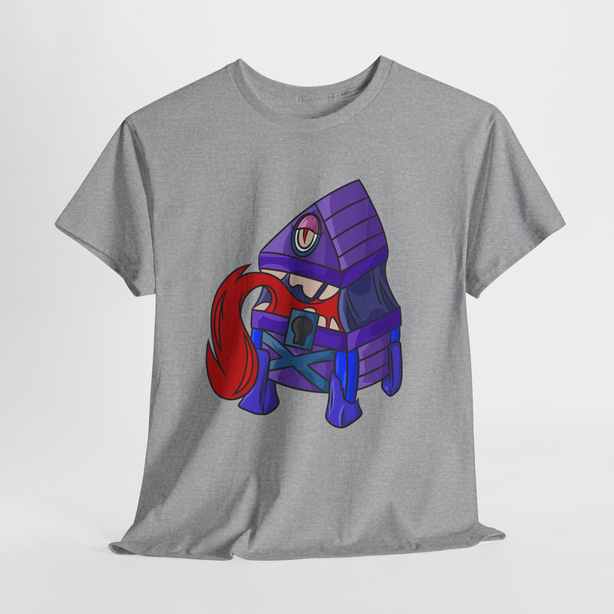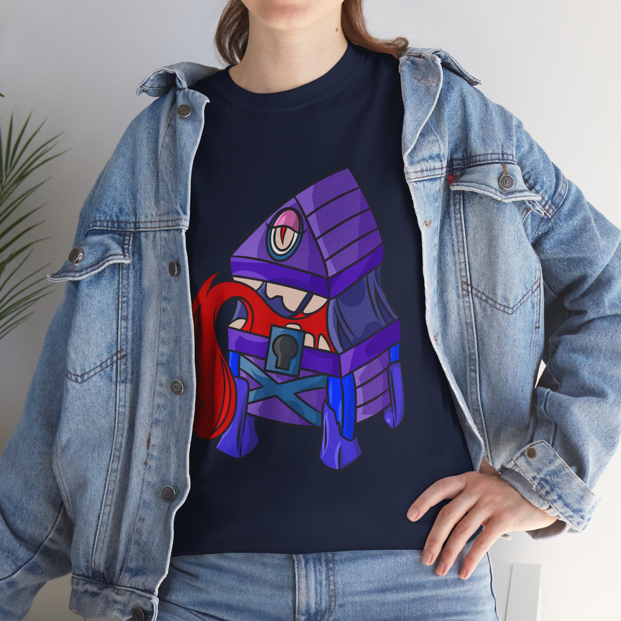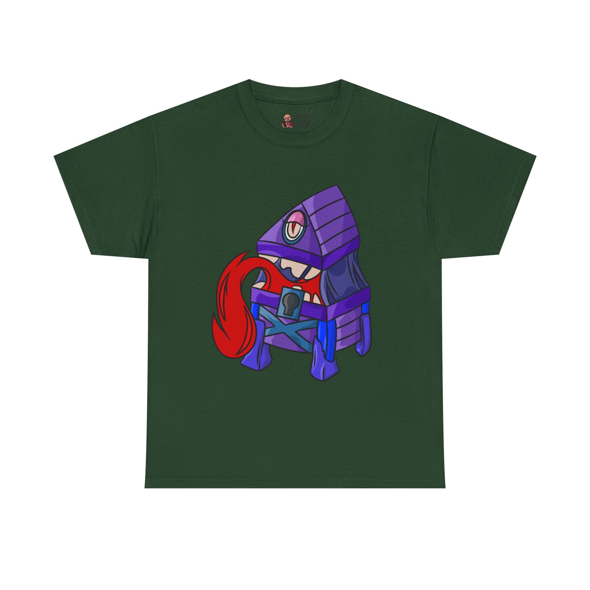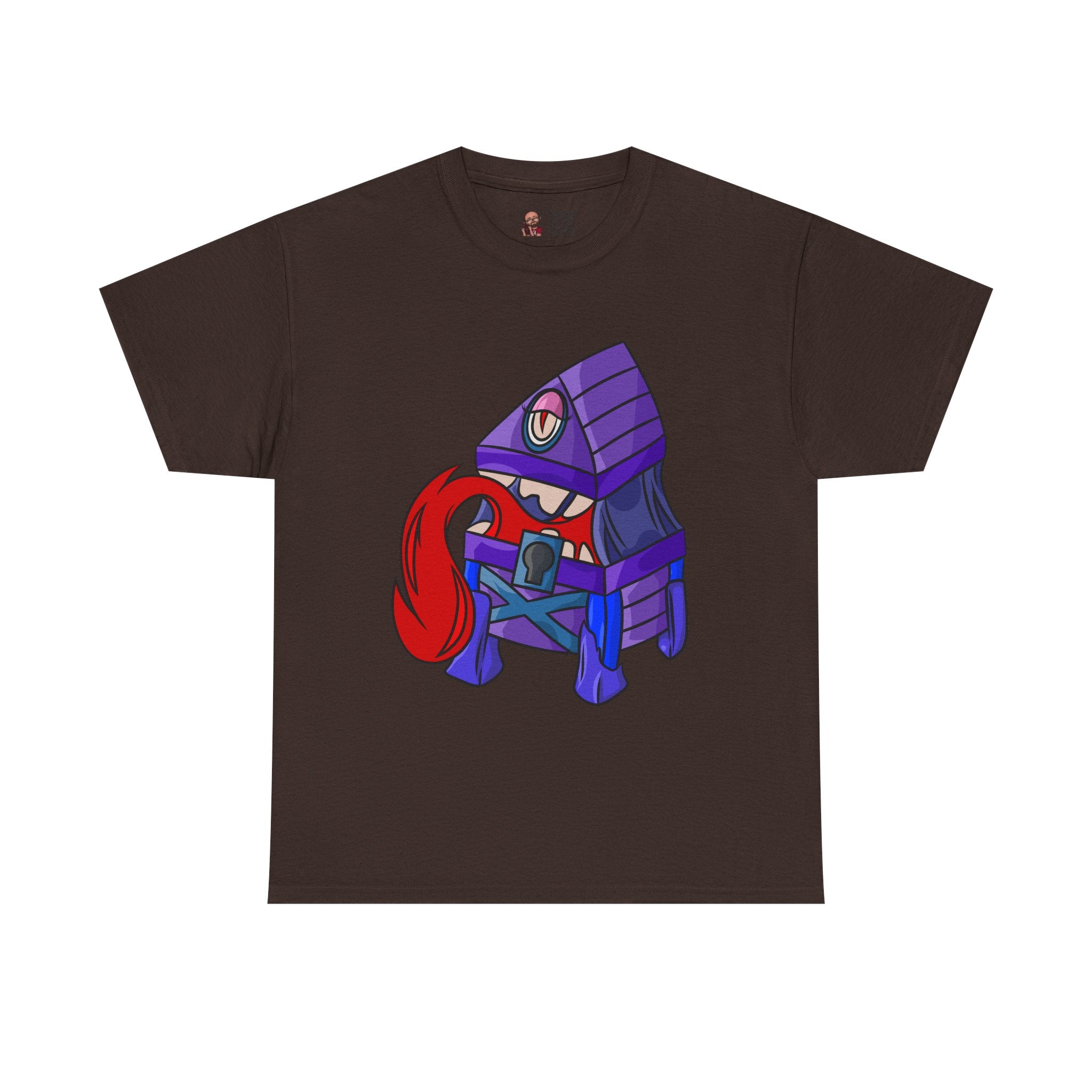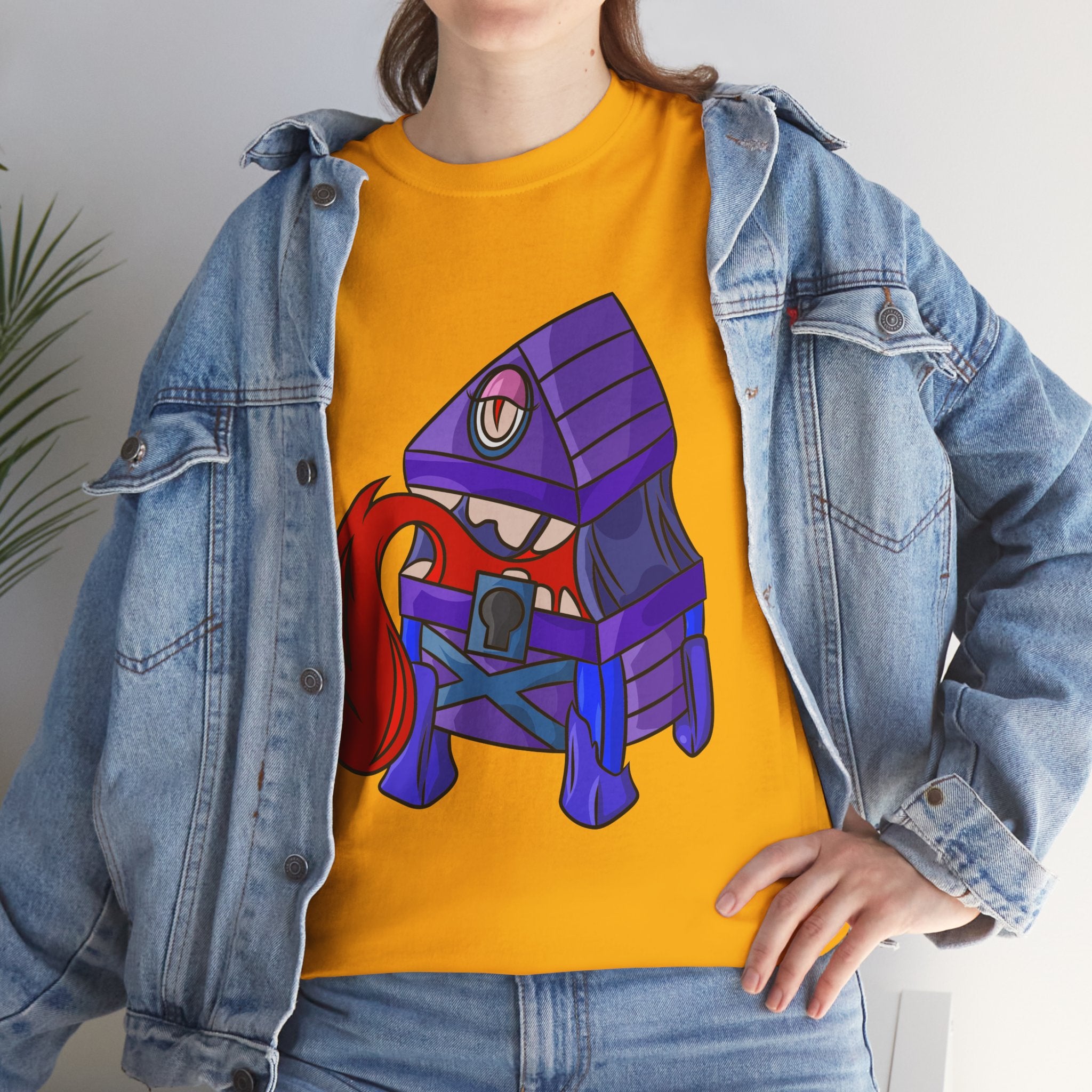 Minnie the Mimic is a playful, slightly spooky tee that brings dungeon humor to everyday wear. Imagine a small, loveable mimic — all toothy grin and curious tongue — waiting in the shadows of a tabletop session or tucked into the corner of a game night. This shirt’s artwork leans into affectionate menace: mischievous eyes, a licking tongue, and a pose that reads more cheeky companion than monster. It slips easily into the wardrobe of roleplayers, dungeon masters, and fantasy fans who enjoy a wink of dark whimsy. Soft, sturdy cotton and a smooth print give the design the pop it needs while keeping the shirt wearable from one session to the next. Throw it on for a late-night campaign, a convention meetup, or when you want a small, nerdy charm that announces your sense of humor without shouting.