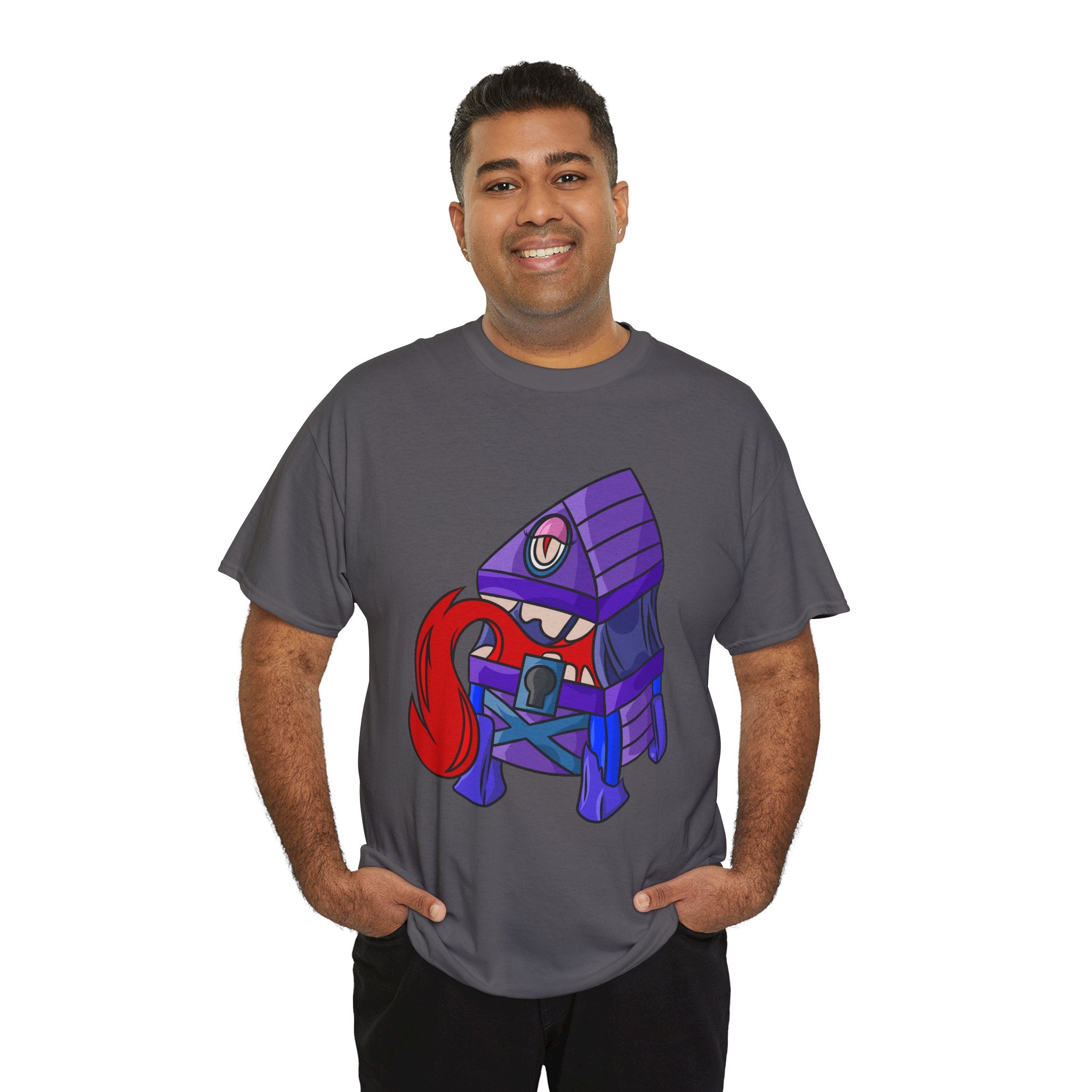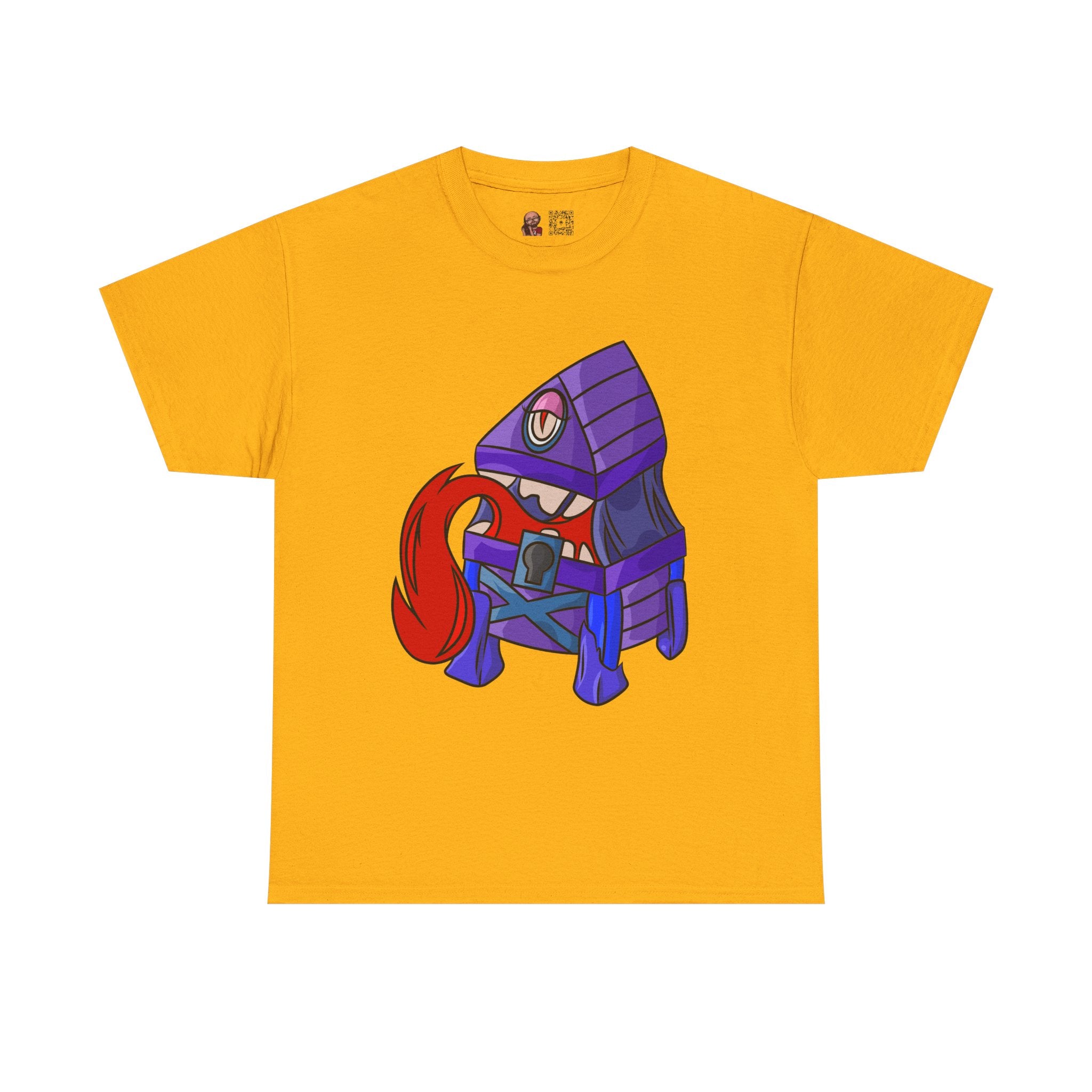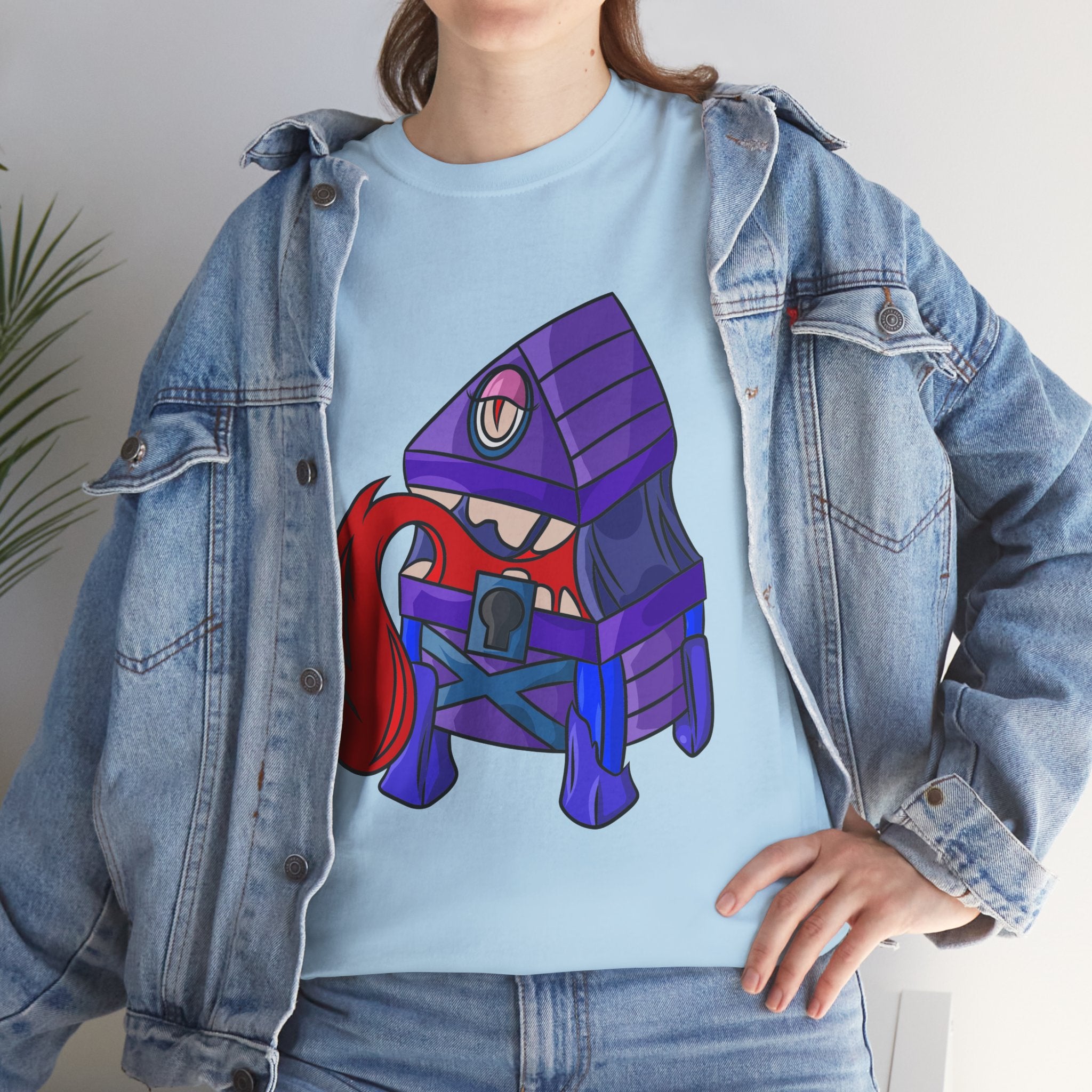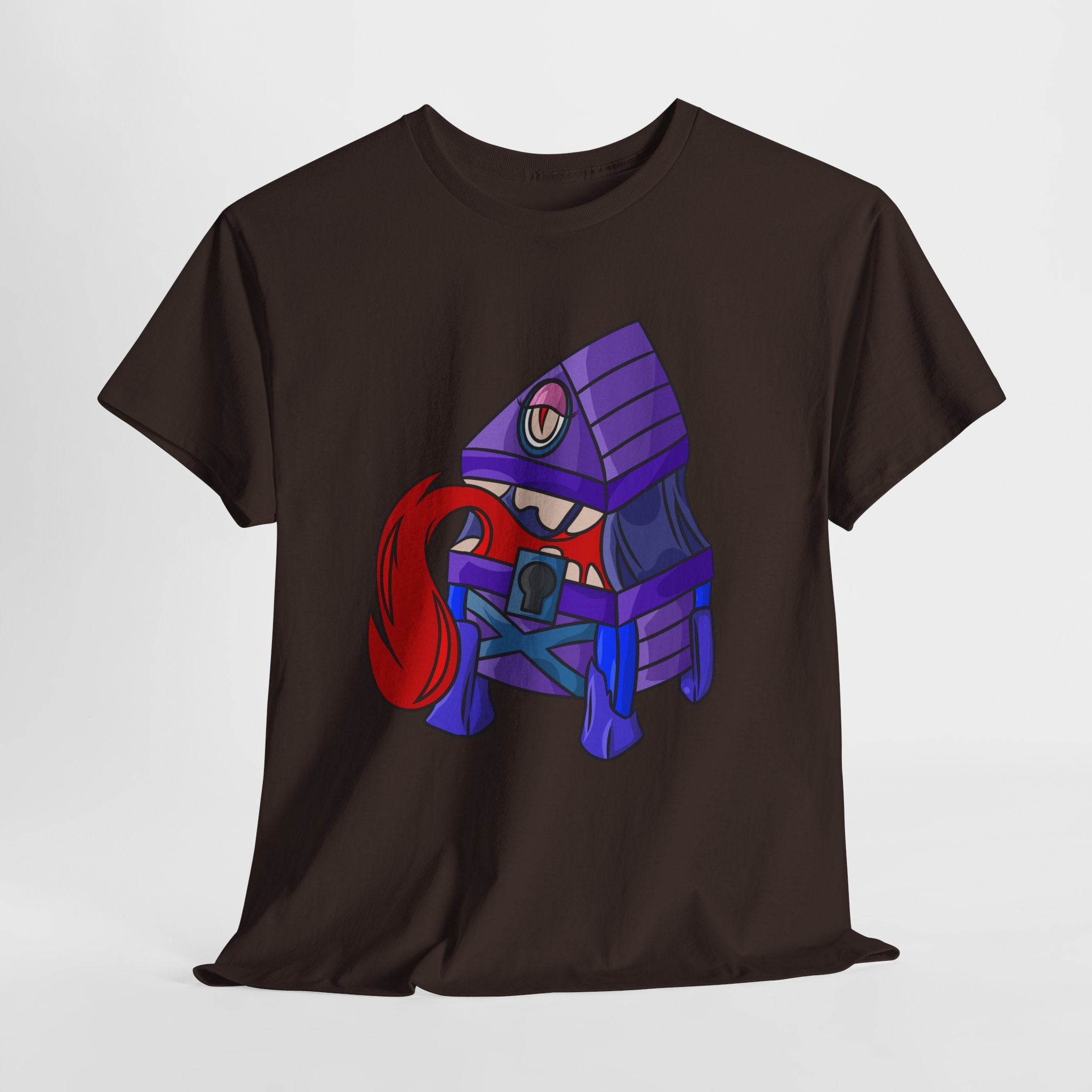 Minnie the Mimic is a playful, slightly spooky tee that brings dungeon humor to everyday wear. Imagine a small, loveable mimic — all toothy grin and curious tongue — waiting in the shadows of a tabletop session or tucked into the corner of a game night. This shirt’s artwork leans into affectionate menace: mischievous eyes, a licking tongue, and a pose that reads more cheeky companion than monster. It slips easily into the wardrobe of roleplayers, dungeon masters, and fantasy fans who enjoy a wink of dark whimsy. Soft, sturdy cotton and a smooth print give the design the pop it needs while keeping the shirt wearable from one session to the next. Throw it on for a late-night campaign, a convention meetup, or when you want a small, nerdy charm that announces your sense of humor without shouting.