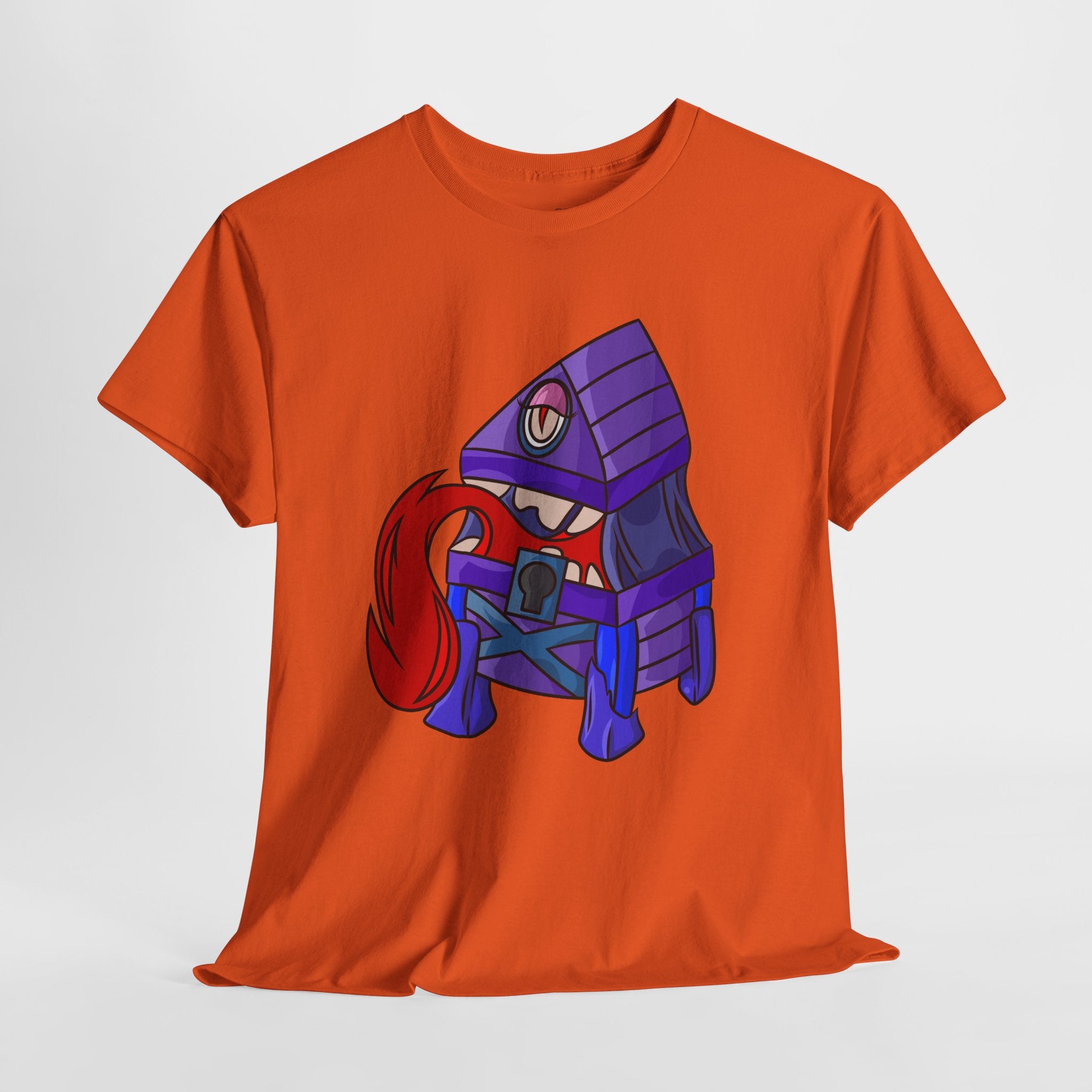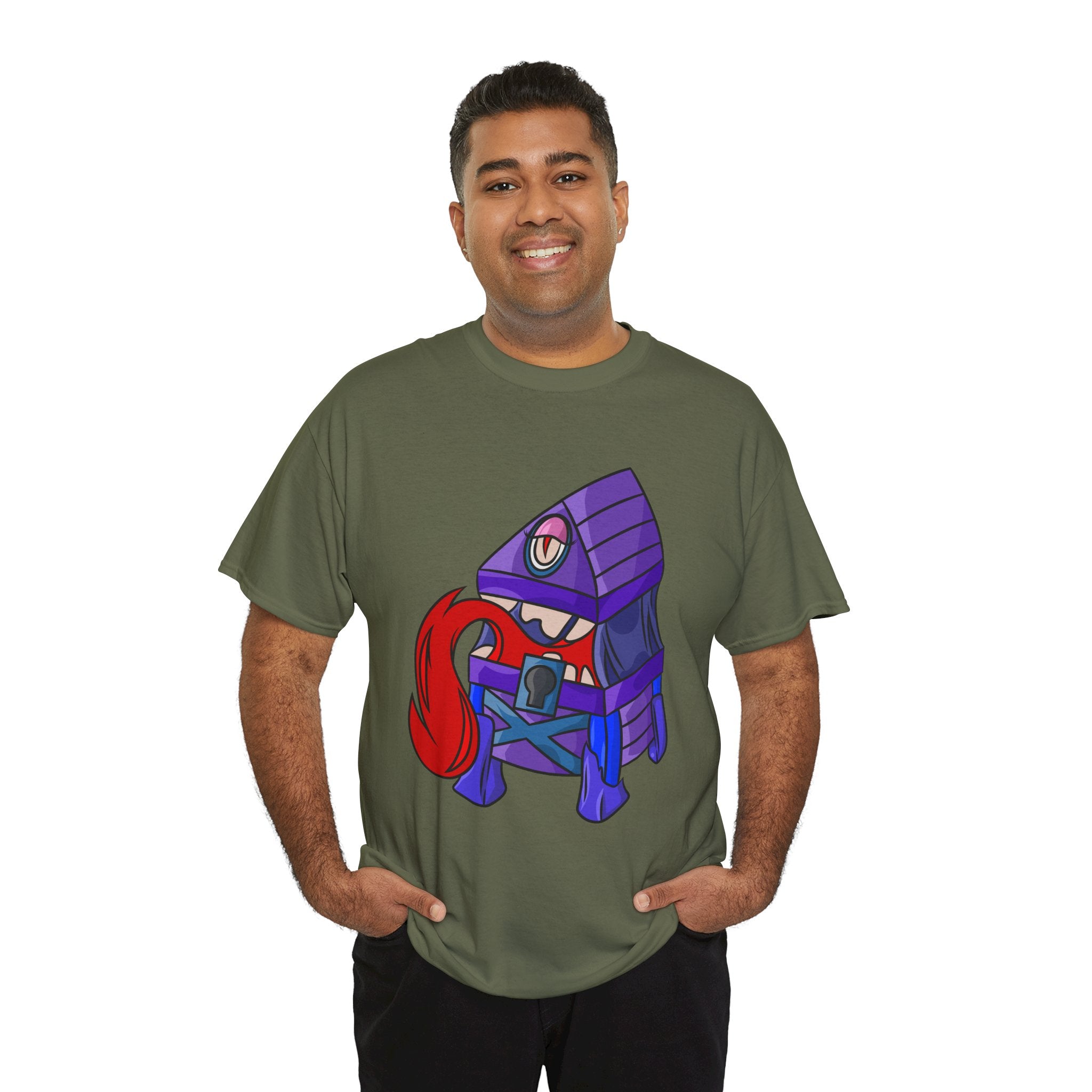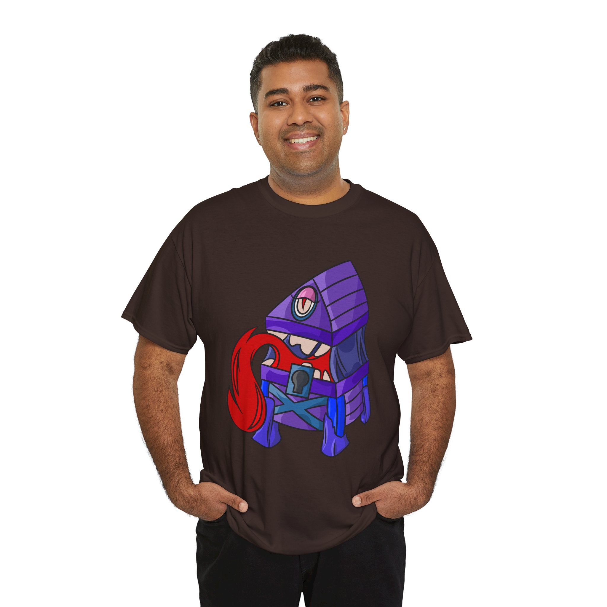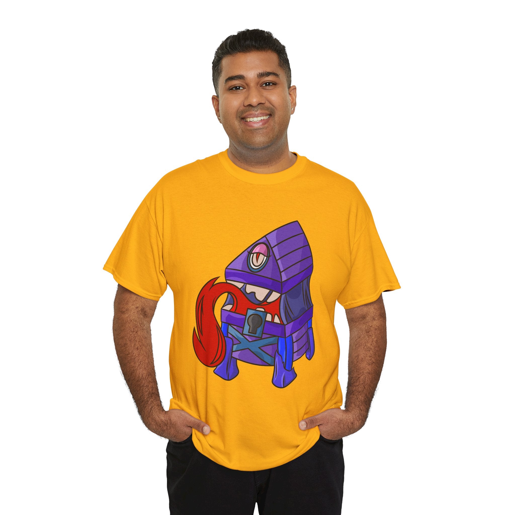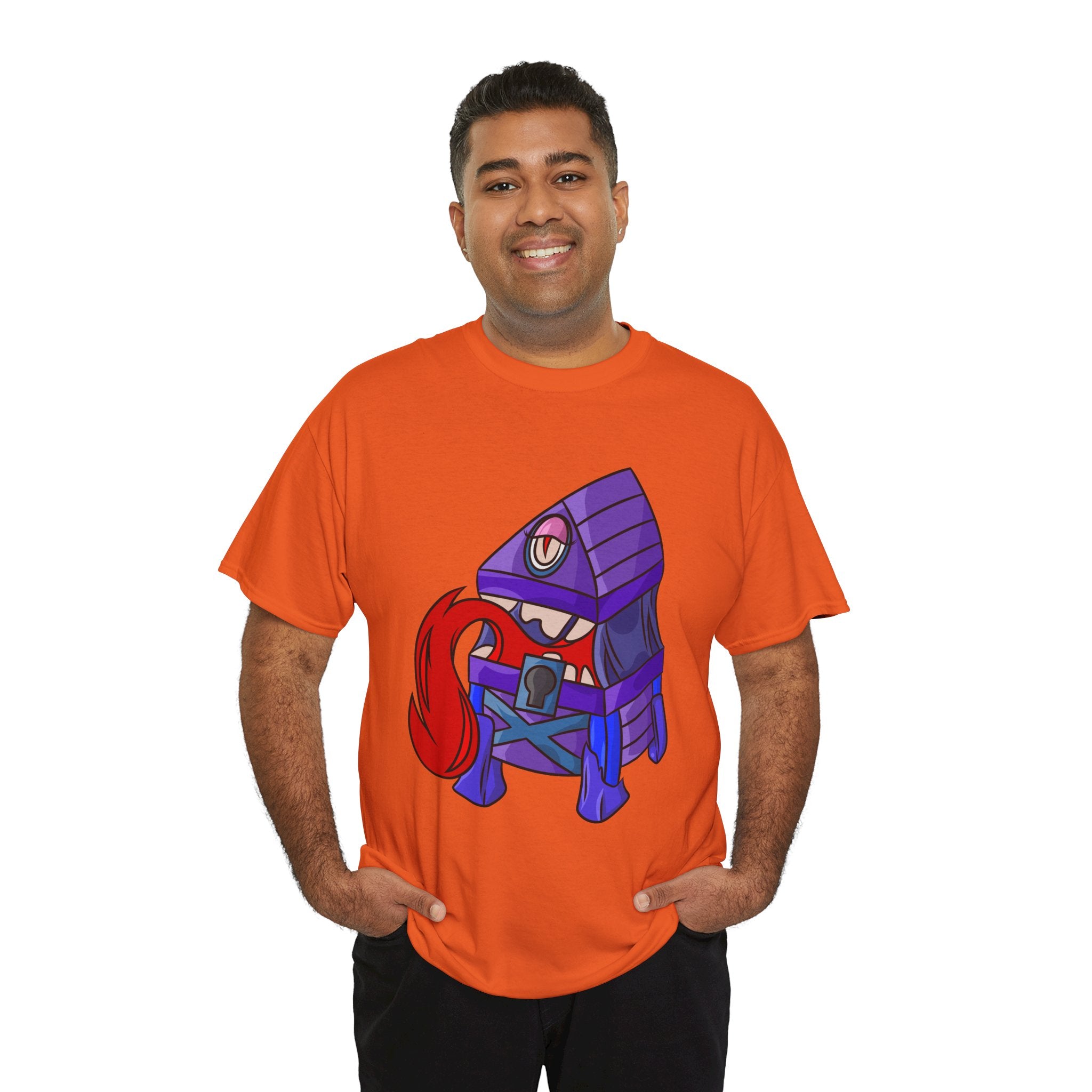 Minnie the Mimic is a playful, slightly spooky tee that brings dungeon humor to everyday wear. Imagine a small, loveable mimic — all toothy grin and curious tongue — waiting in the shadows of a tabletop session or tucked into the corner of a game night. This shirt’s artwork leans into affectionate menace: mischievous eyes, a licking tongue, and a pose that reads more cheeky companion than monster. It slips easily into the wardrobe of roleplayers, dungeon masters, and fantasy fans who enjoy a wink of dark whimsy. Soft, sturdy cotton and a smooth print give the design the pop it needs while keeping the shirt wearable from one session to the next. Throw it on for a late-night campaign, a convention meetup, or when you want a small, nerdy charm that announces your sense of humor without shouting.