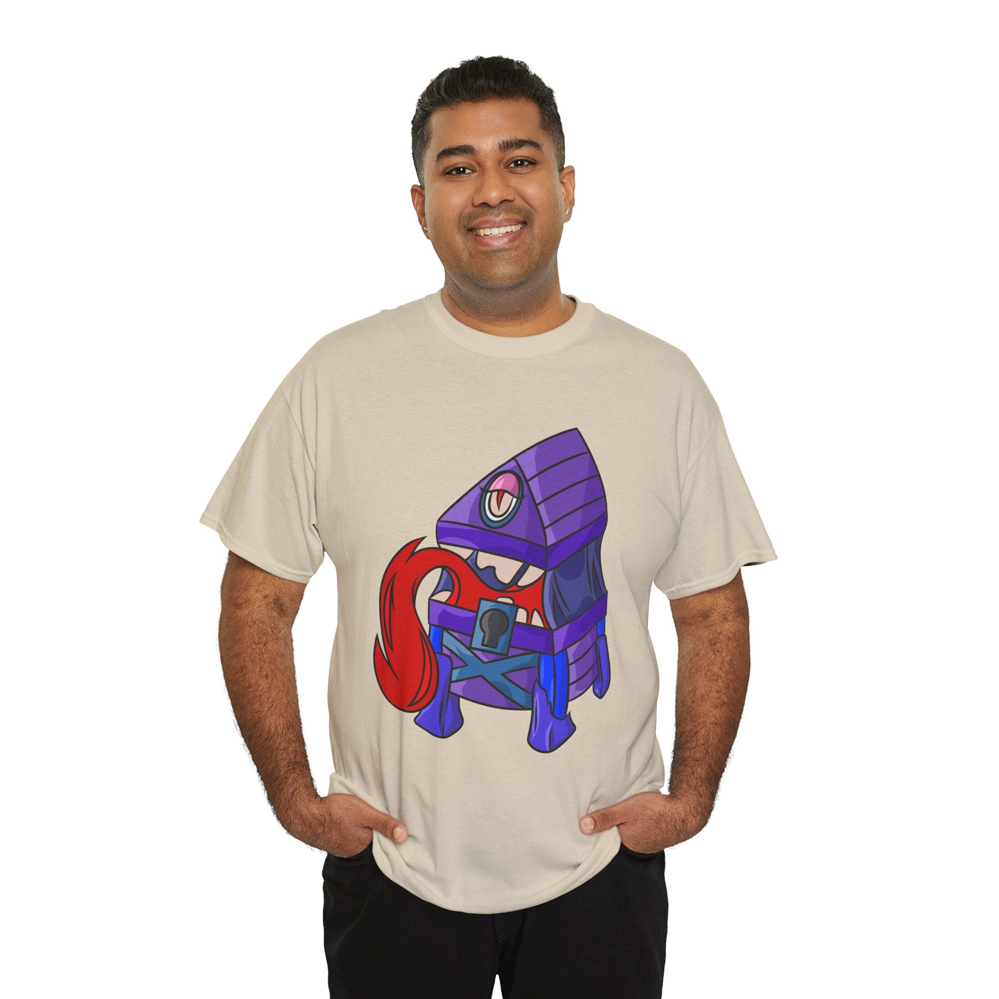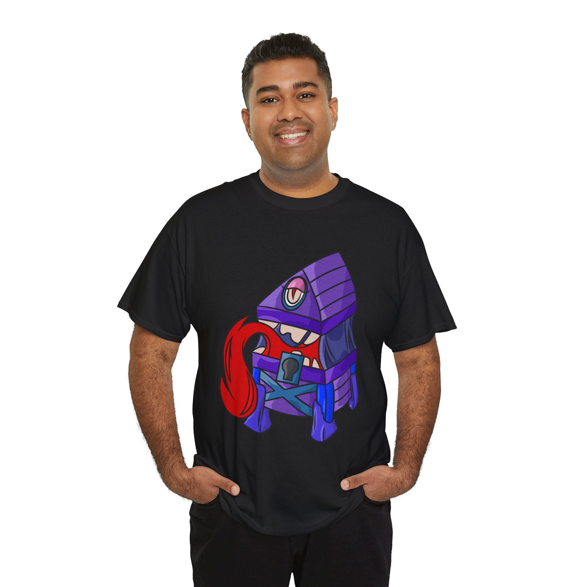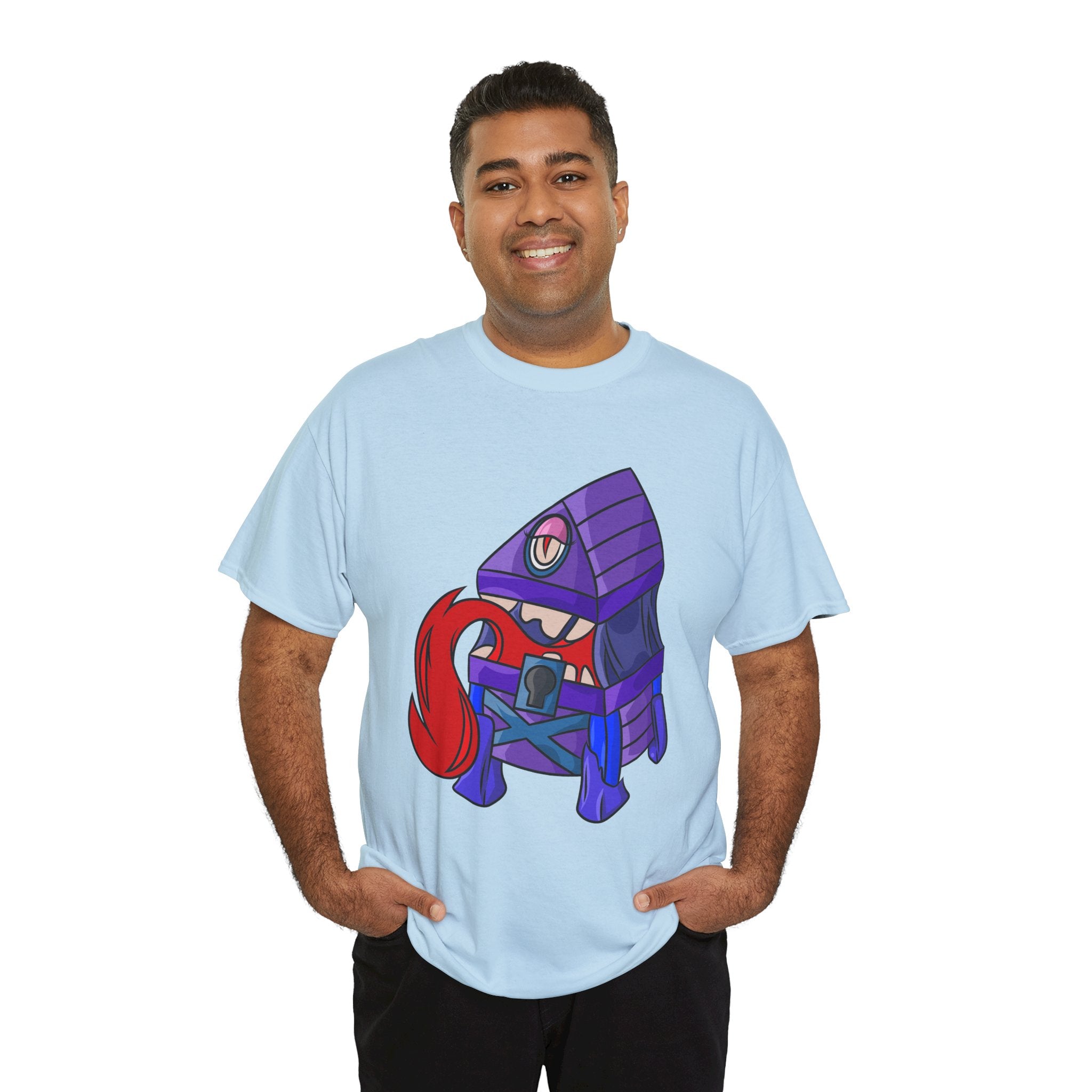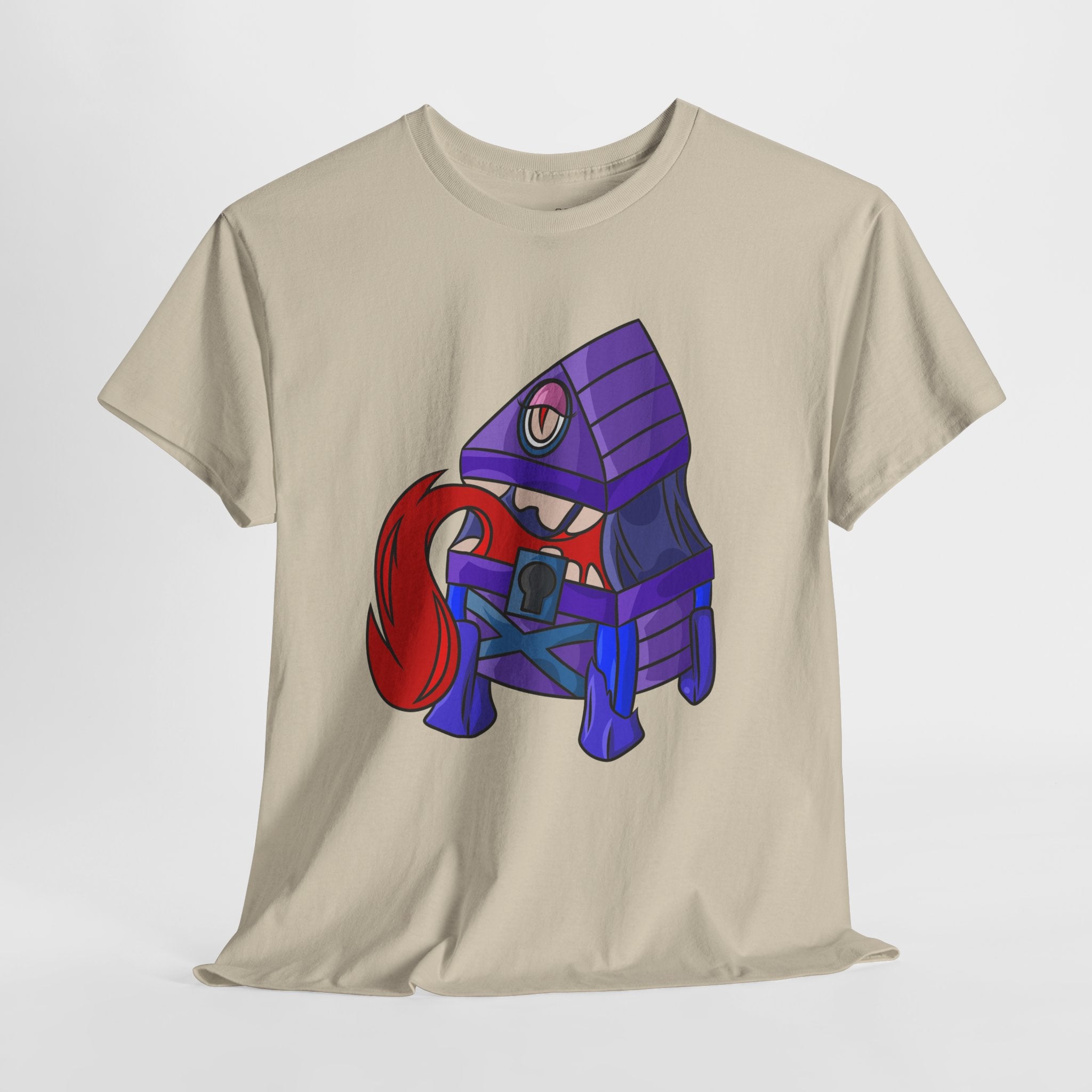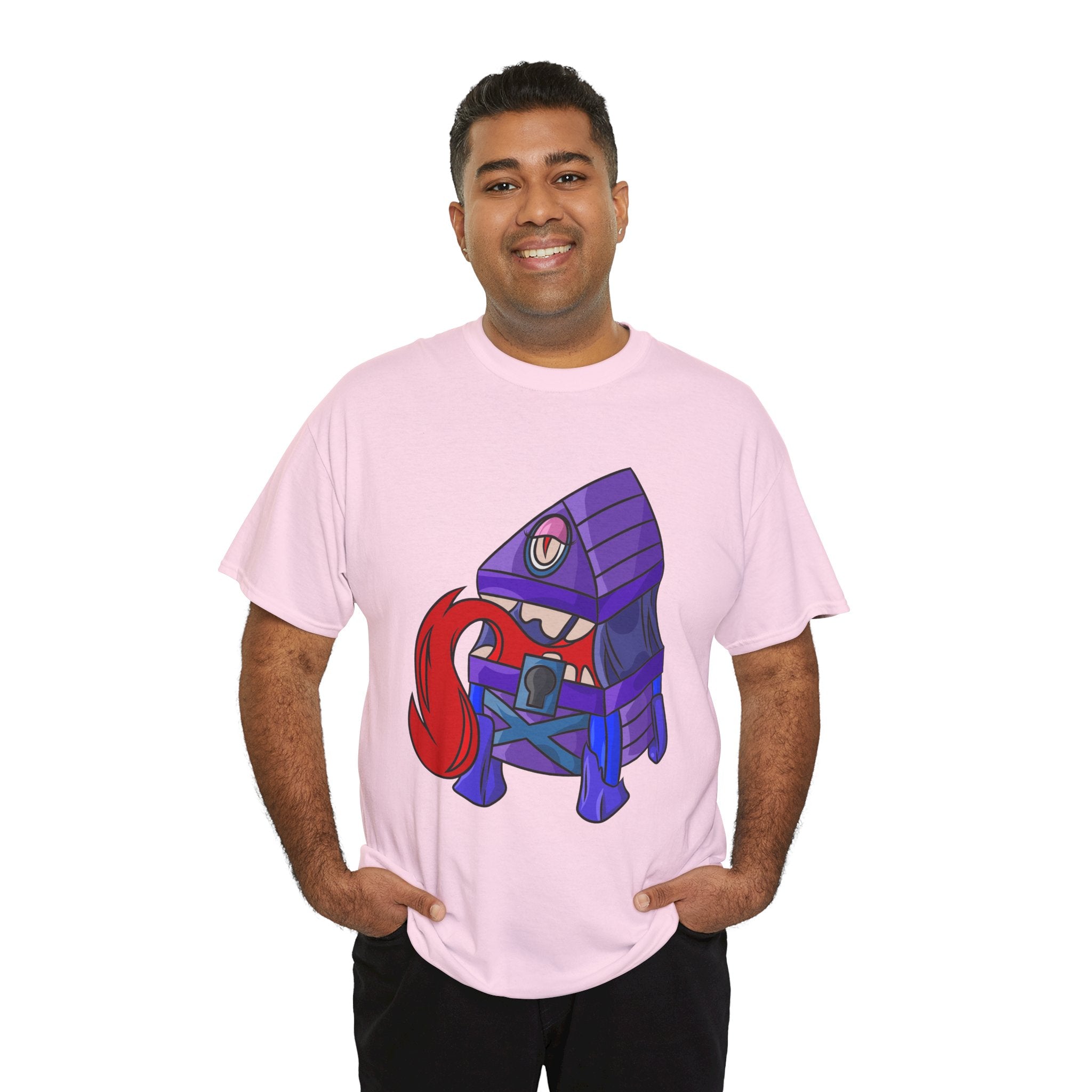 Minnie the Mimic is a playful, slightly spooky tee that brings dungeon humor to everyday wear. Imagine a small, loveable mimic — all toothy grin and curious tongue — waiting in the shadows of a tabletop session or tucked into the corner of a game night. This shirt’s artwork leans into affectionate menace: mischievous eyes, a licking tongue, and a pose that reads more cheeky companion than monster. It slips easily into the wardrobe of roleplayers, dungeon masters, and fantasy fans who enjoy a wink of dark whimsy. Soft, sturdy cotton and a smooth print give the design the pop it needs while keeping the shirt wearable from one session to the next. Throw it on for a late-night campaign, a convention meetup, or when you want a small, nerdy charm that announces your sense of humor without shouting.