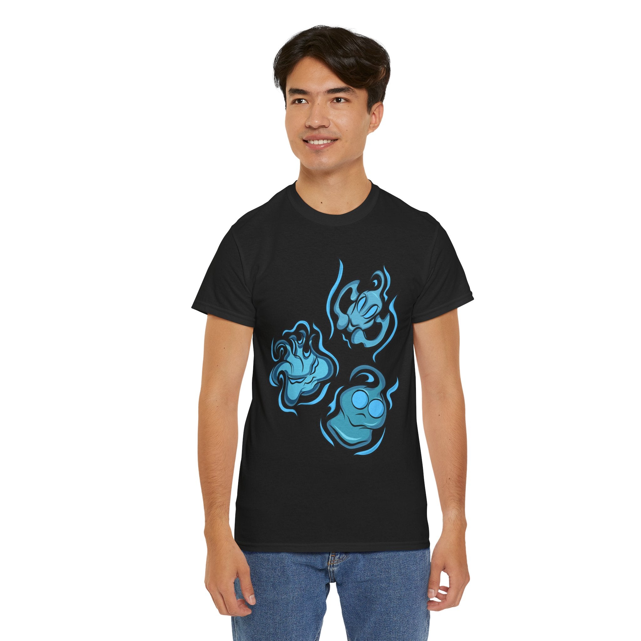 A soft, sturdy tee printed with mischievous will-o’-wisps — tiny fae sparks that dance at the edge of the woods....