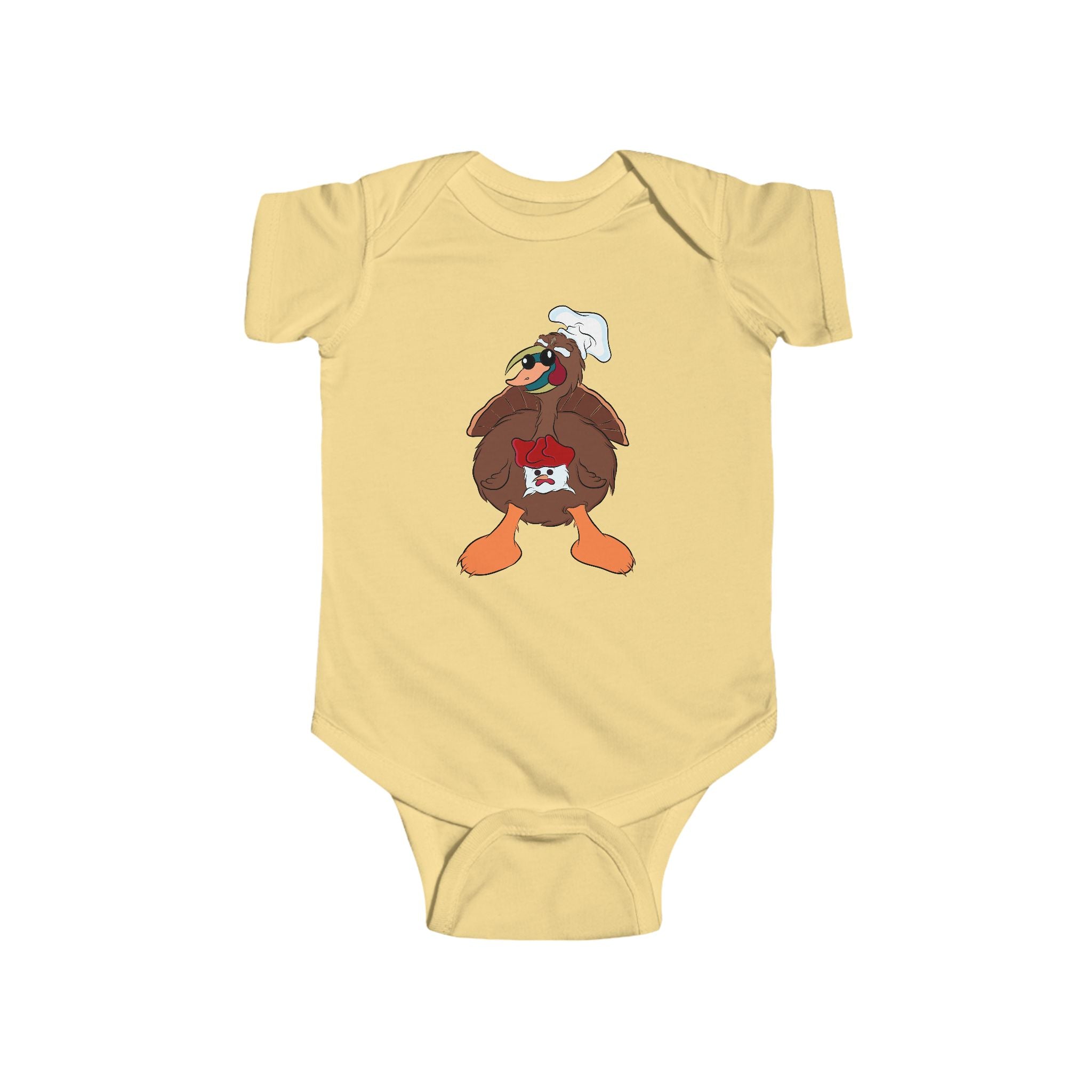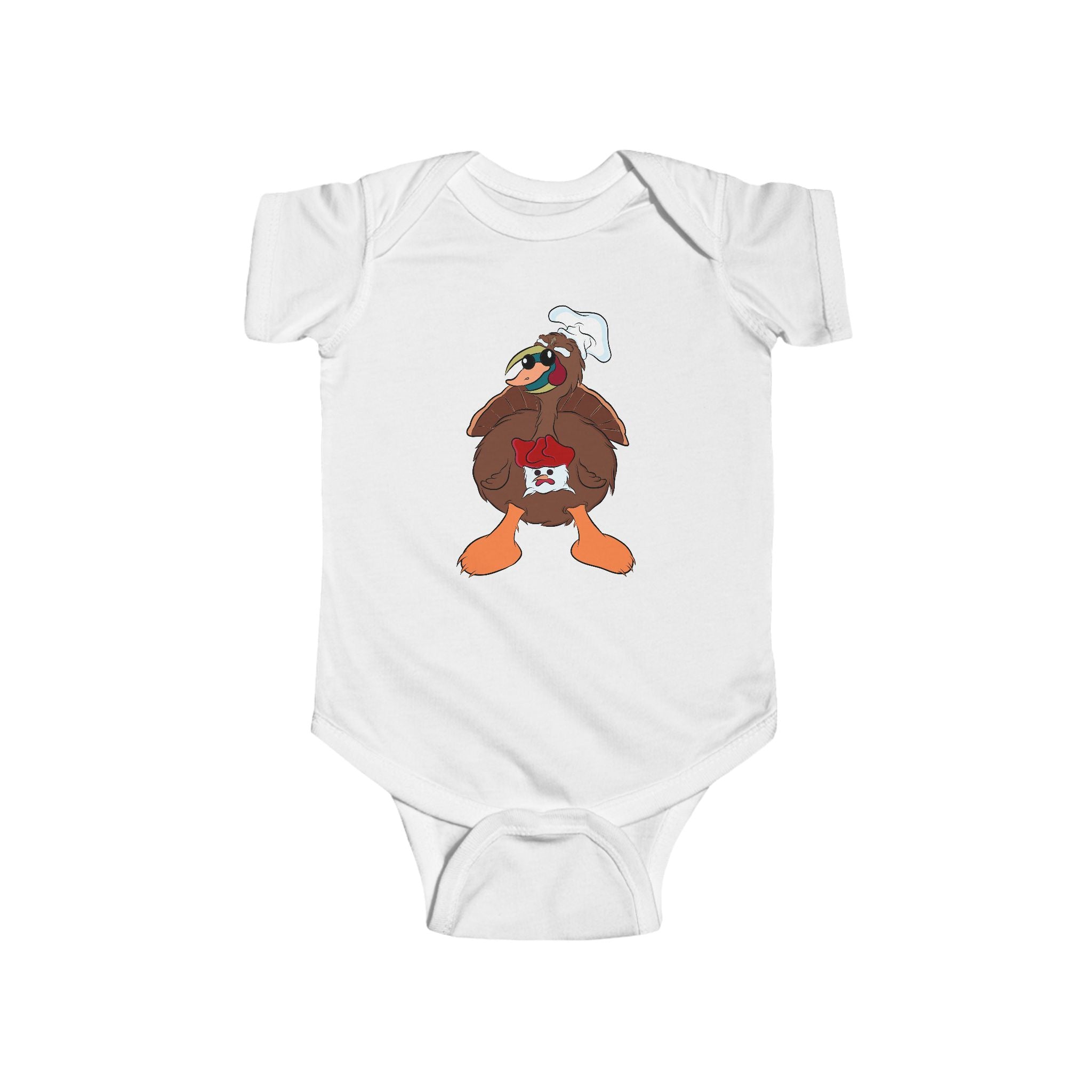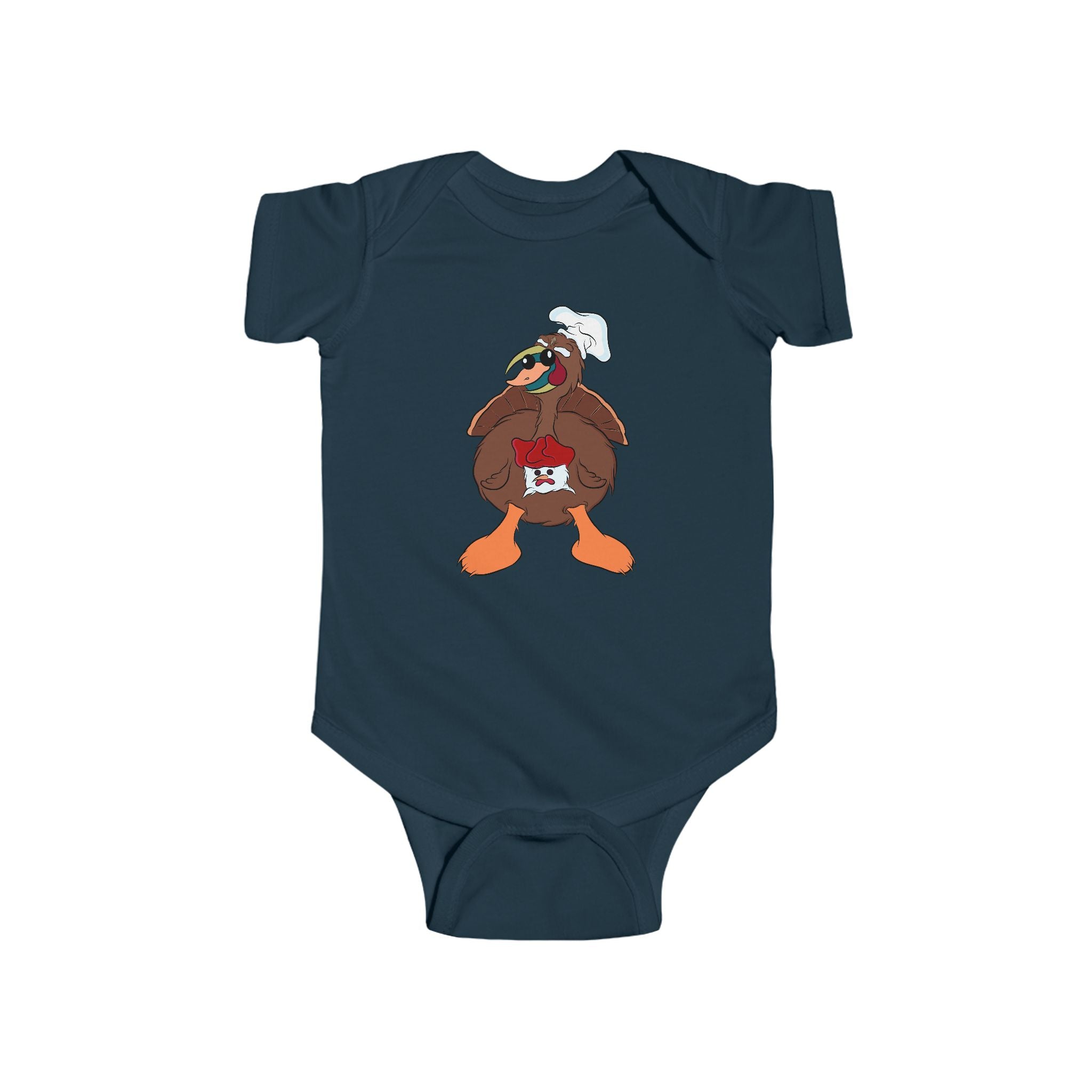 This Infant Jersey Bodysuit featuring Ted the TurDucKen design is perfect for parents looking to add a touch of whimsy...