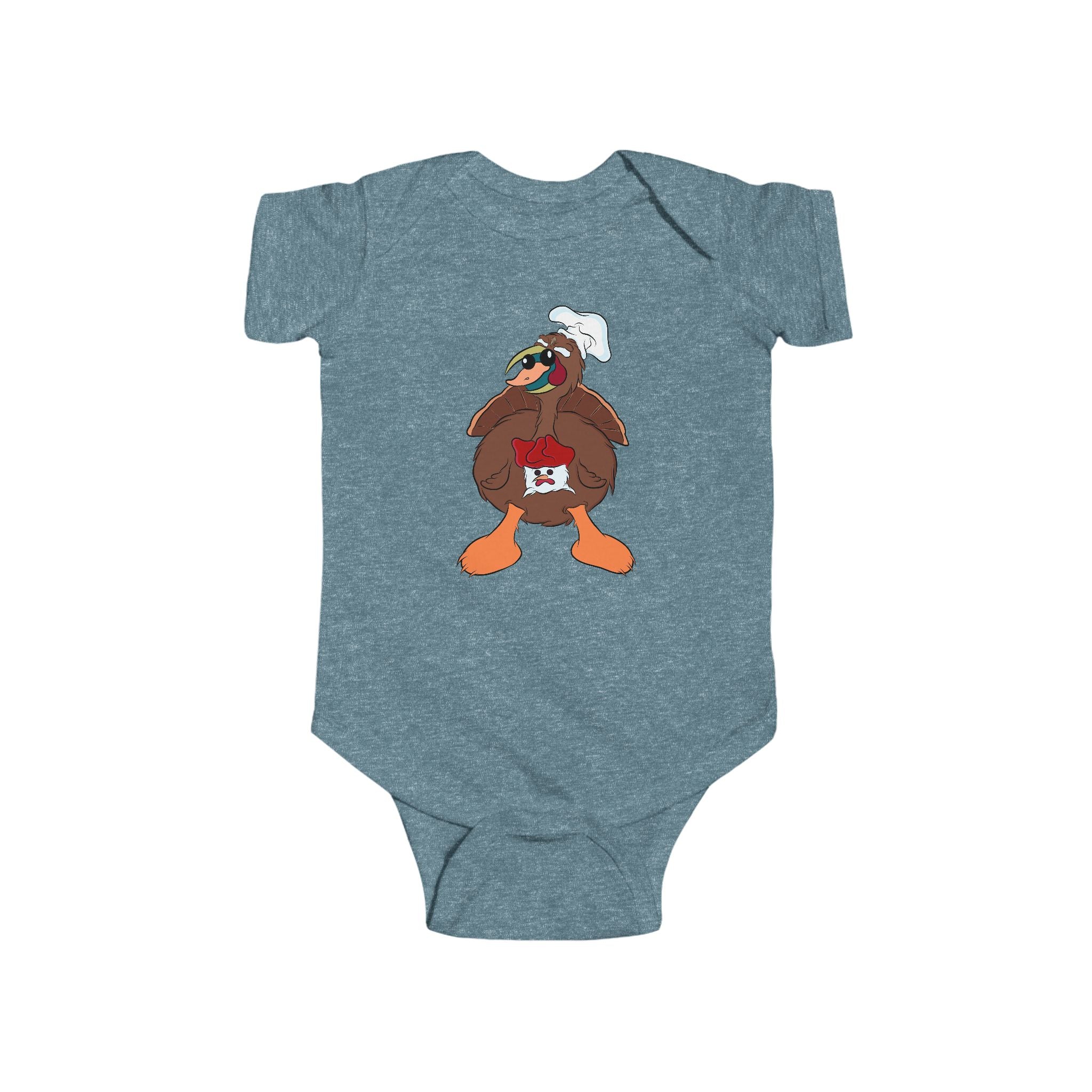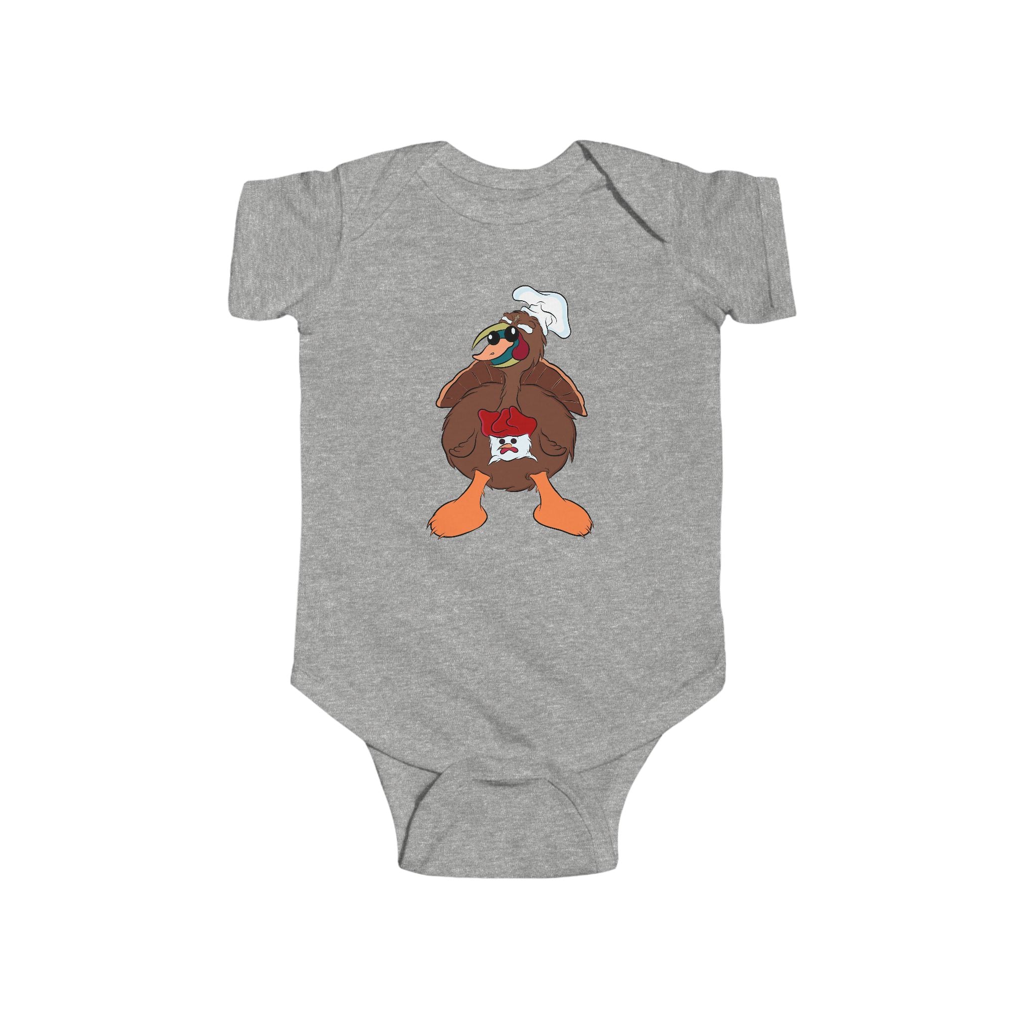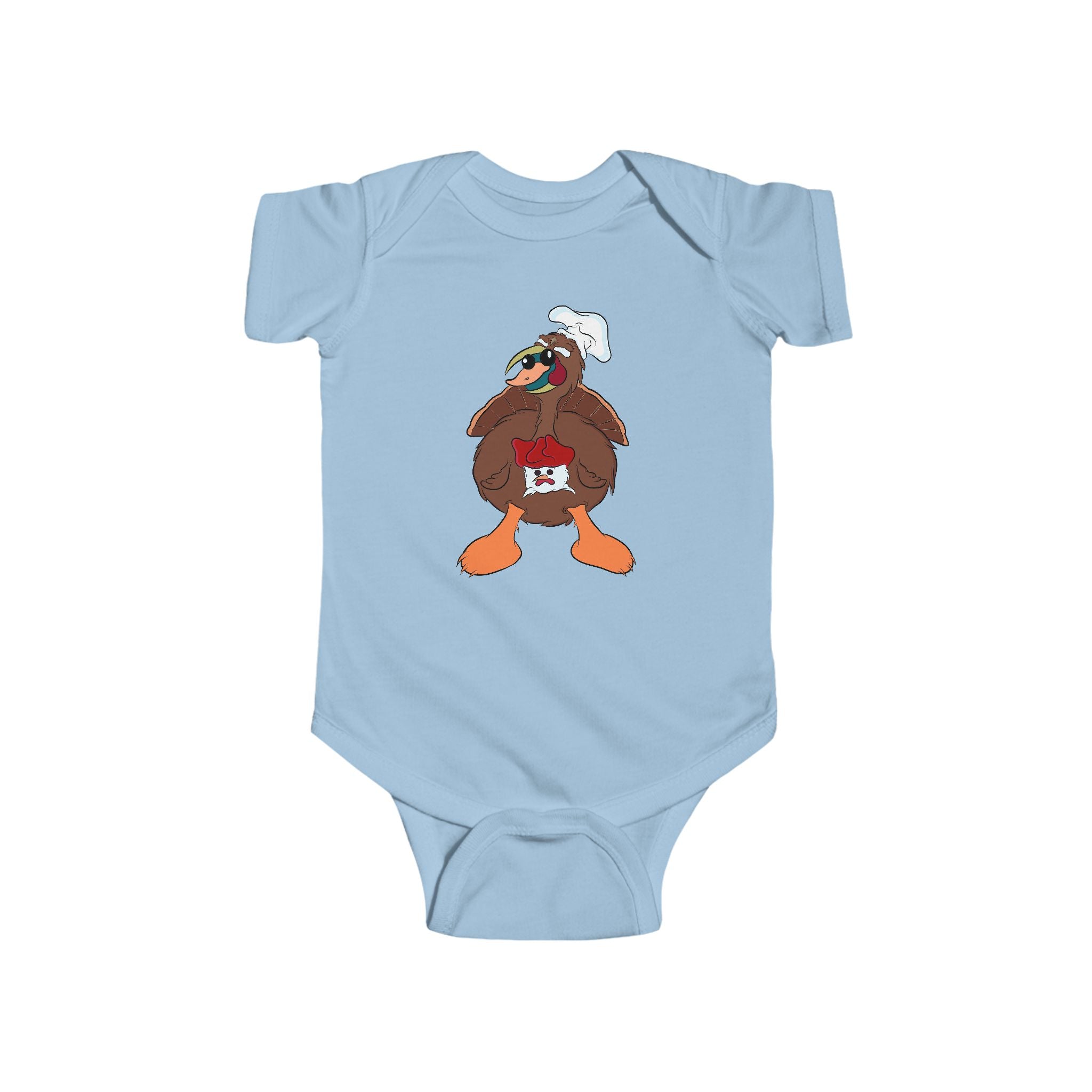 This Infant Jersey Bodysuit featuring Ted the TurDucKen design is perfect for parents looking to add a touch of whimsy...