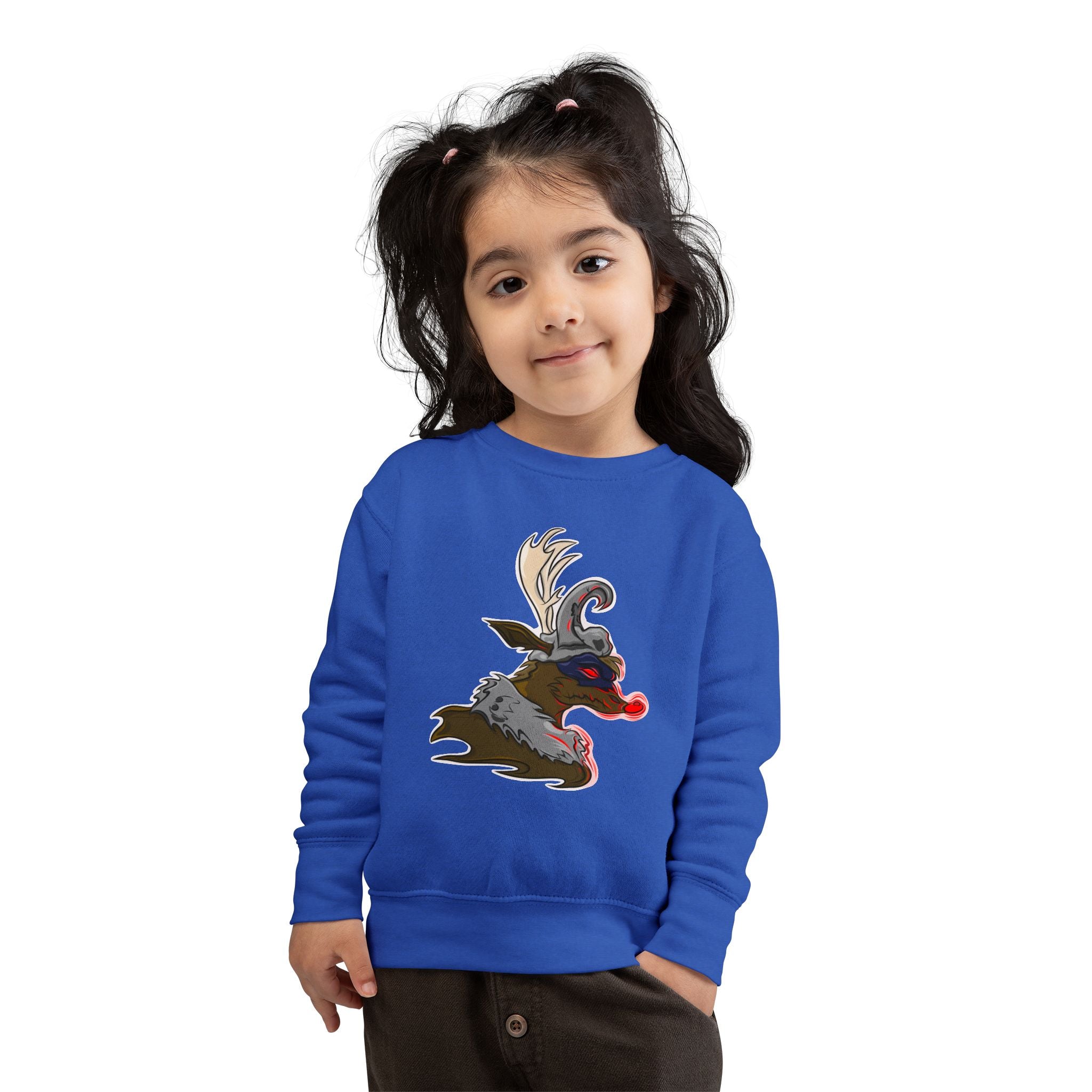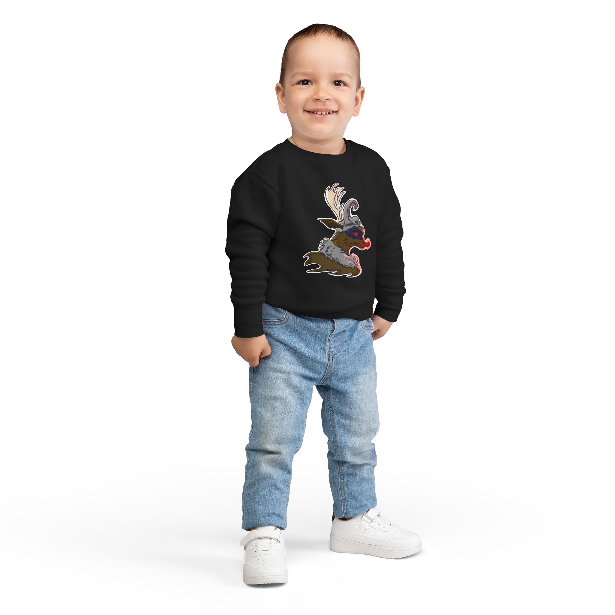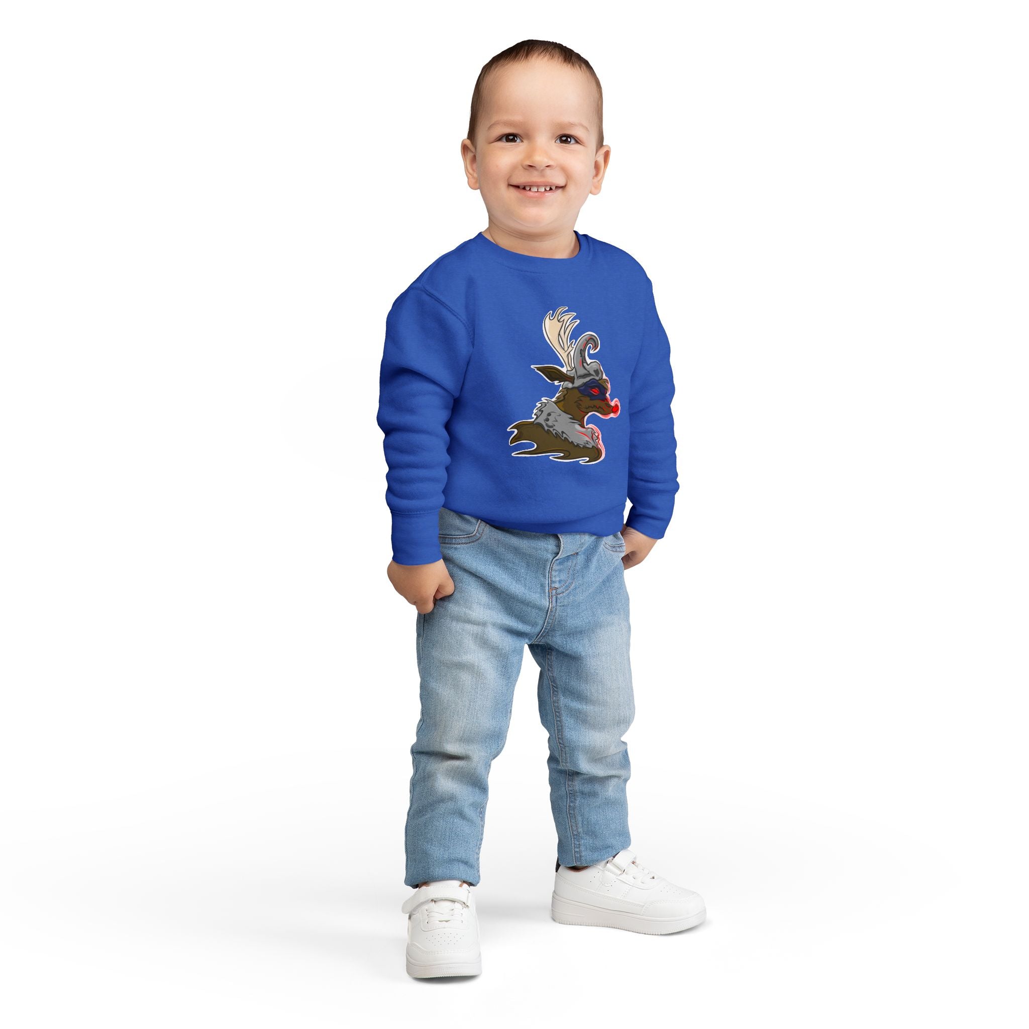 Soft, cozy, and playfully bold — this toddler sweatshirt brings a little edge to chilly days. The cream heather fabric feels gentle against delicate skin while the quirky reindeer-inspired illustration adds attitude and imagination to everyday outfits. Layer it over tees or under a snowsuit for rambunctious playground adventures, storytime cuddles, or relaxed family photos. The medium-weight knit holds its shape through play and washes, and the tearaway label keeps comfort front and center so tiny explorers stay focused on fun, not scratchy seams.